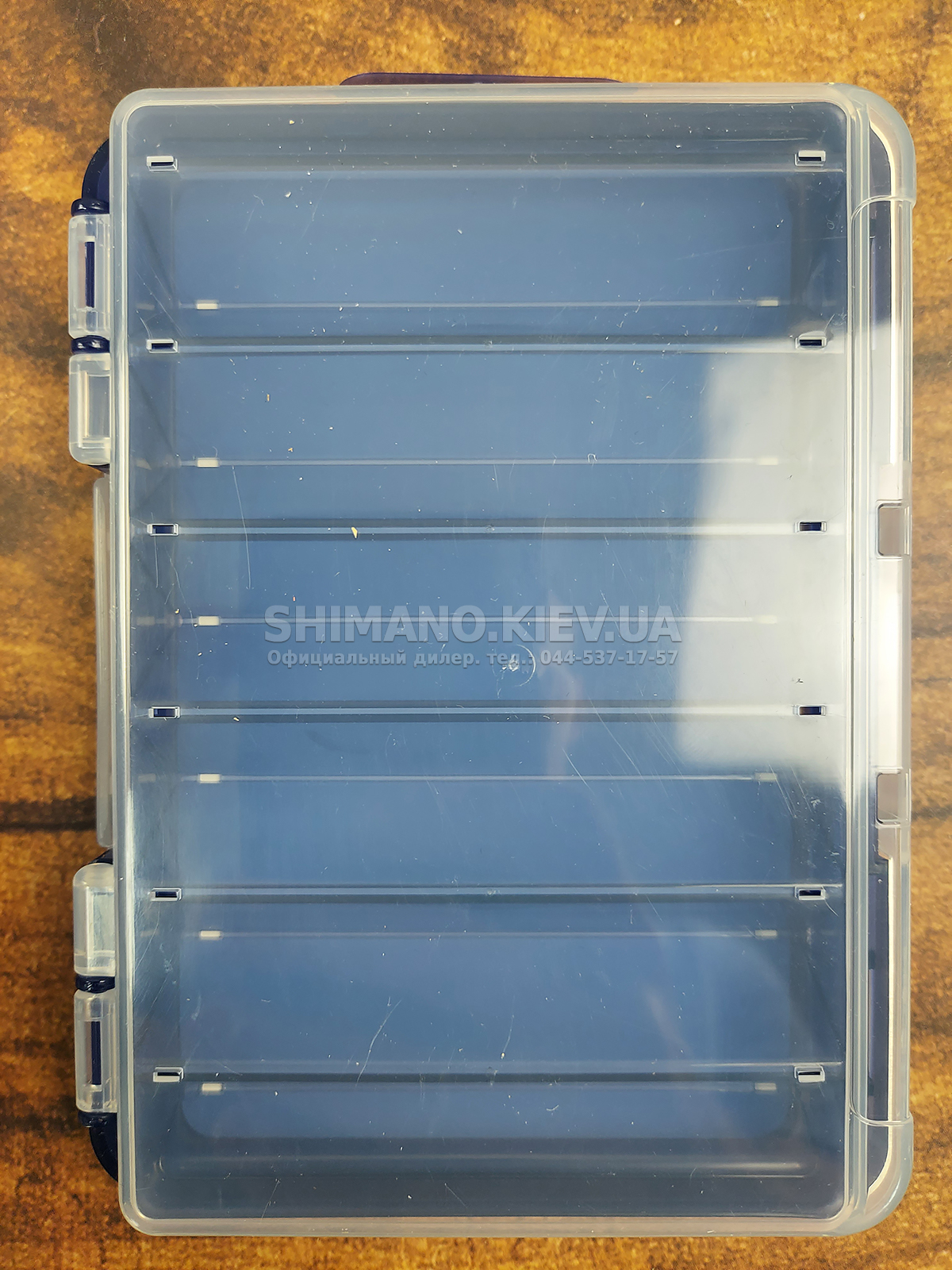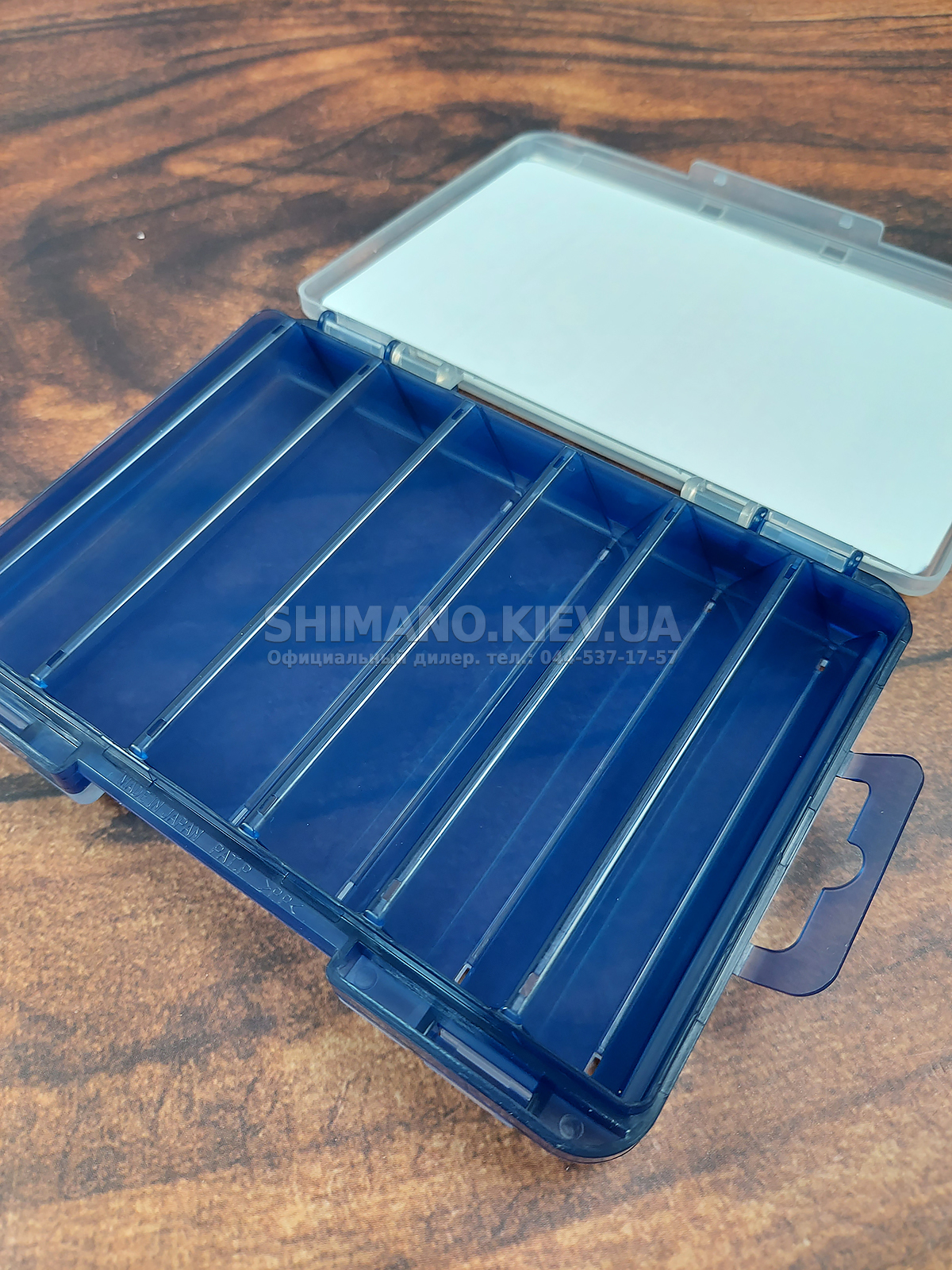 Исключительно удобная двухсторонняя коробка для хранения воблеров. Система перегородок, расположенных зигзагообразно в сечении, оптимизирует внутреннее пространство и увеличивает вместительность при неизменных габаритах. Дно каждой V-образной в сечении секции имеет отверстия для выхода воды и водяного пара, которые соответствуют отверстиям в крышке. Благодаря этому приманки, находящиеся внутри, не нужно каждый раз сушить после рыбалки. Коробка выполнена из прочного пластика, крышки оборудованы прочными шарнирами и застежками.