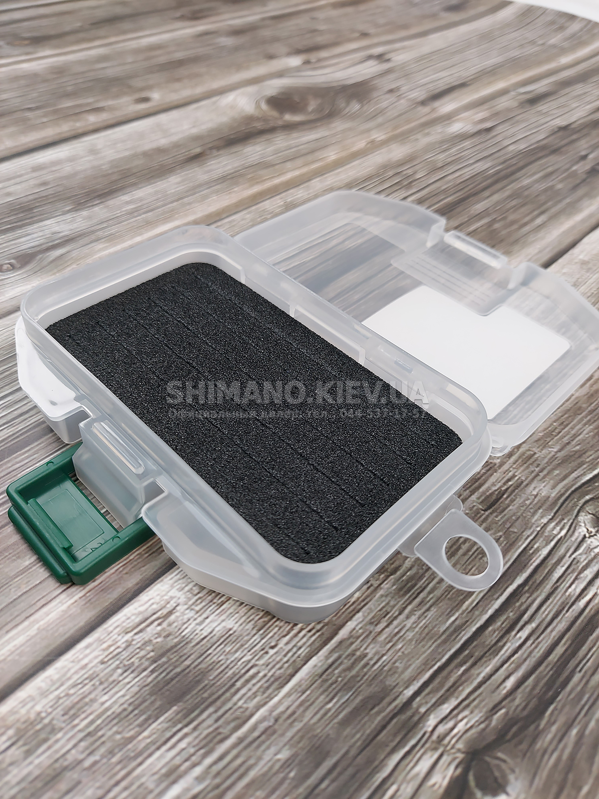 Коробка со вставкой из мягкого пористого материала. Идеально подходит для хранения колеблющихся и вращающихся блесен, мягких приманок, а также нахлыстовых мушек и стримеров. Пористая вставка имеет прорези, которые облегчают фиксацию крючка. Коробка выполнена из прочного полупрозрачного пластика, крышка оборудована надежным шарниром и защелкой.
