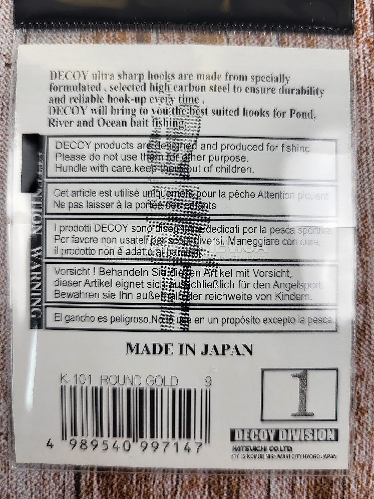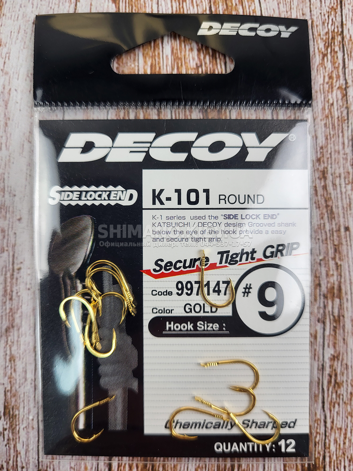 Decoy K-101 - серия крючков универсального назначения. Изготовлены из качественной стали с химической заточкой жала, которое в процессе рыбалки долгое время остаётся острым. Крючки оснащены лопаткой и системой "Side Lock End", имеющей специальные насечки на цевье в том месте, где должен располагаться узел. Благодаря этому леска затягивается более плотно и без лишних изгибов, что предотвращает её соскальзывание и перетирание в месте крепления.