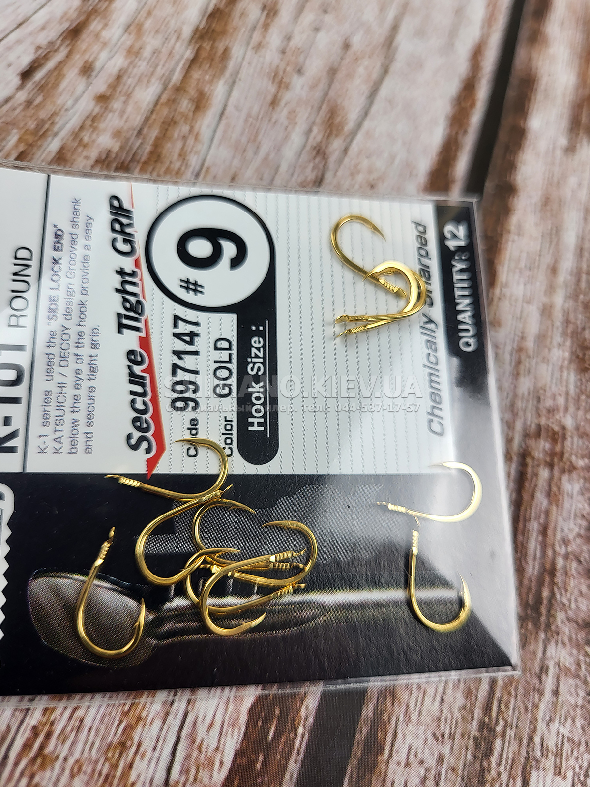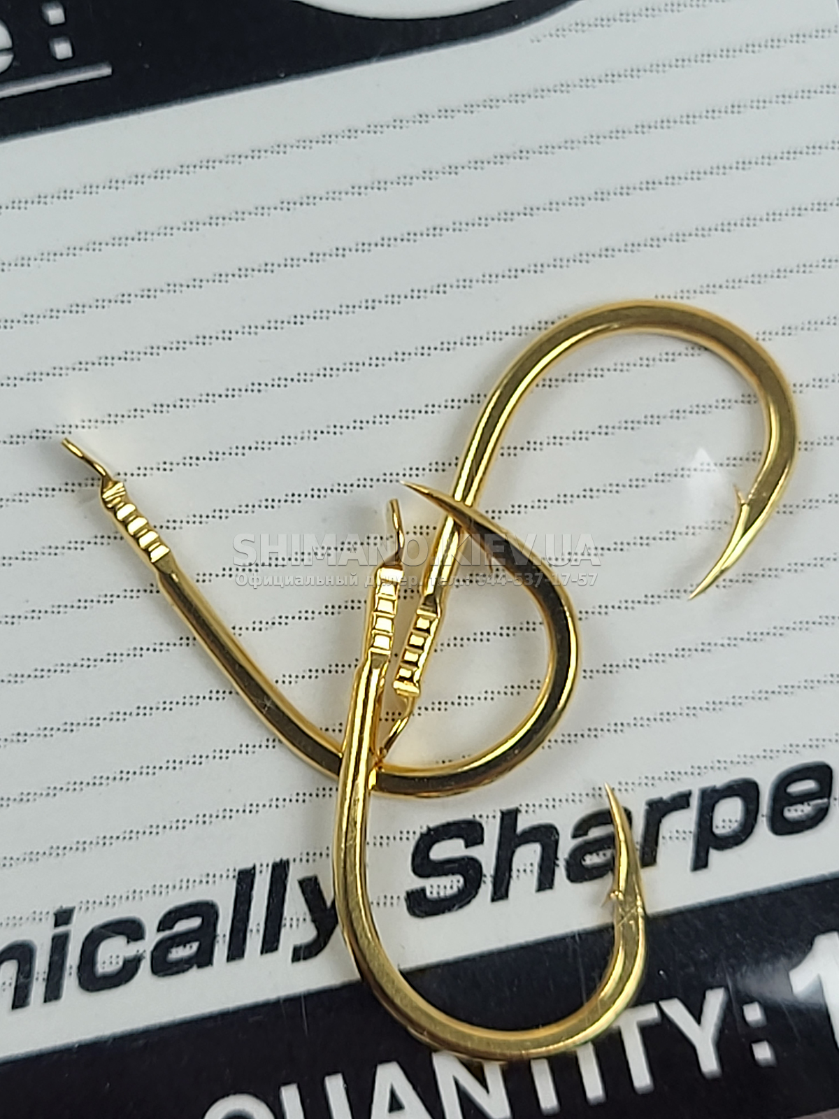 Крючки имеют золотистое покрытие, своим блеском привлекающее внимание рыбы на фоне тёмного дна водоёма.