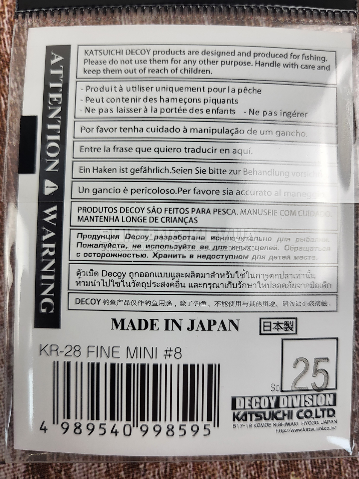 Крючок Decoy KR-28 Fine Mini #8 (18 шт/уп)