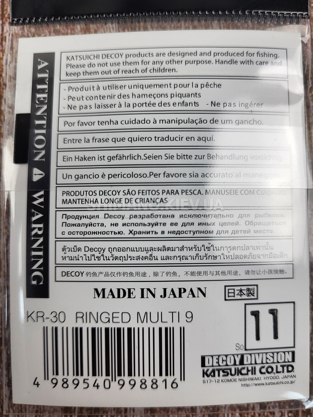 Крючок Decoy KR-30 RINGED MULTI #9 (12 шт/уп)