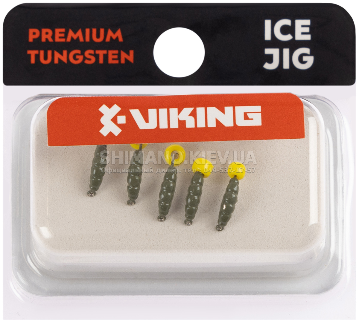 Мормишка вольфрамова Viking Fishing Shrimp+bead 0.37g 7mm Olive+Y (5шт)