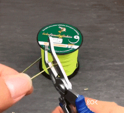 Острые ножницы. На острейшую режущую кромку одного из лезвии ножниц нанесена насечка из мелких зазубрин, что обеспечивает отличающие перерезания даже самых тонких шнуров, не говоря уже о толстых лесках и поводковых материалах.