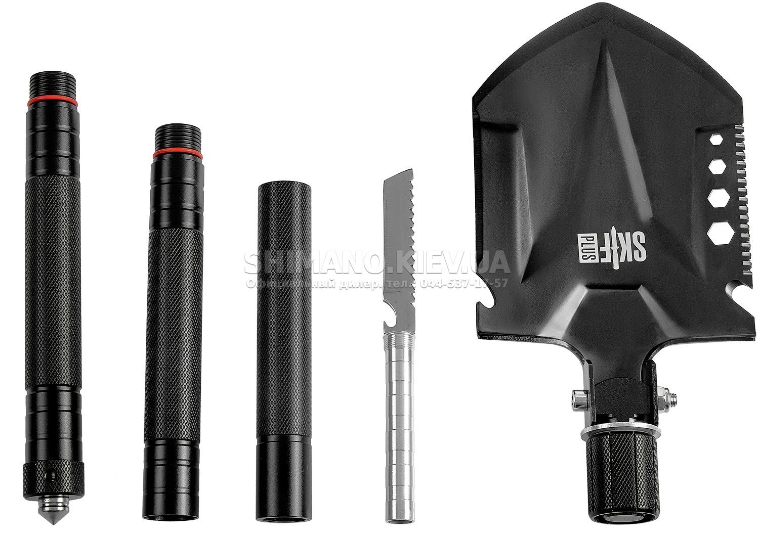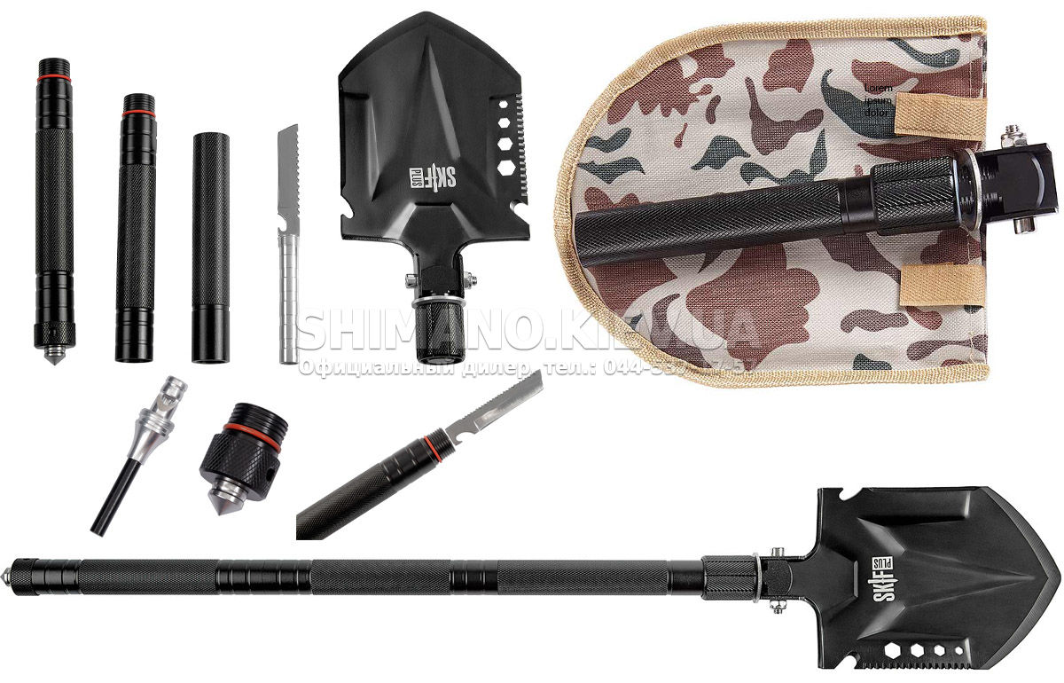 Складная лопата Skif Plus является современным образцом многофункциональной лопаты, которая помимо своей складной конструкции объединяет в себе сразу несколько важных инструментов: лопату, нож, пилу, топор и открывалку для бутылок. В зависимости от модификации могут также присутствовать и более узконаправленные инструменты.