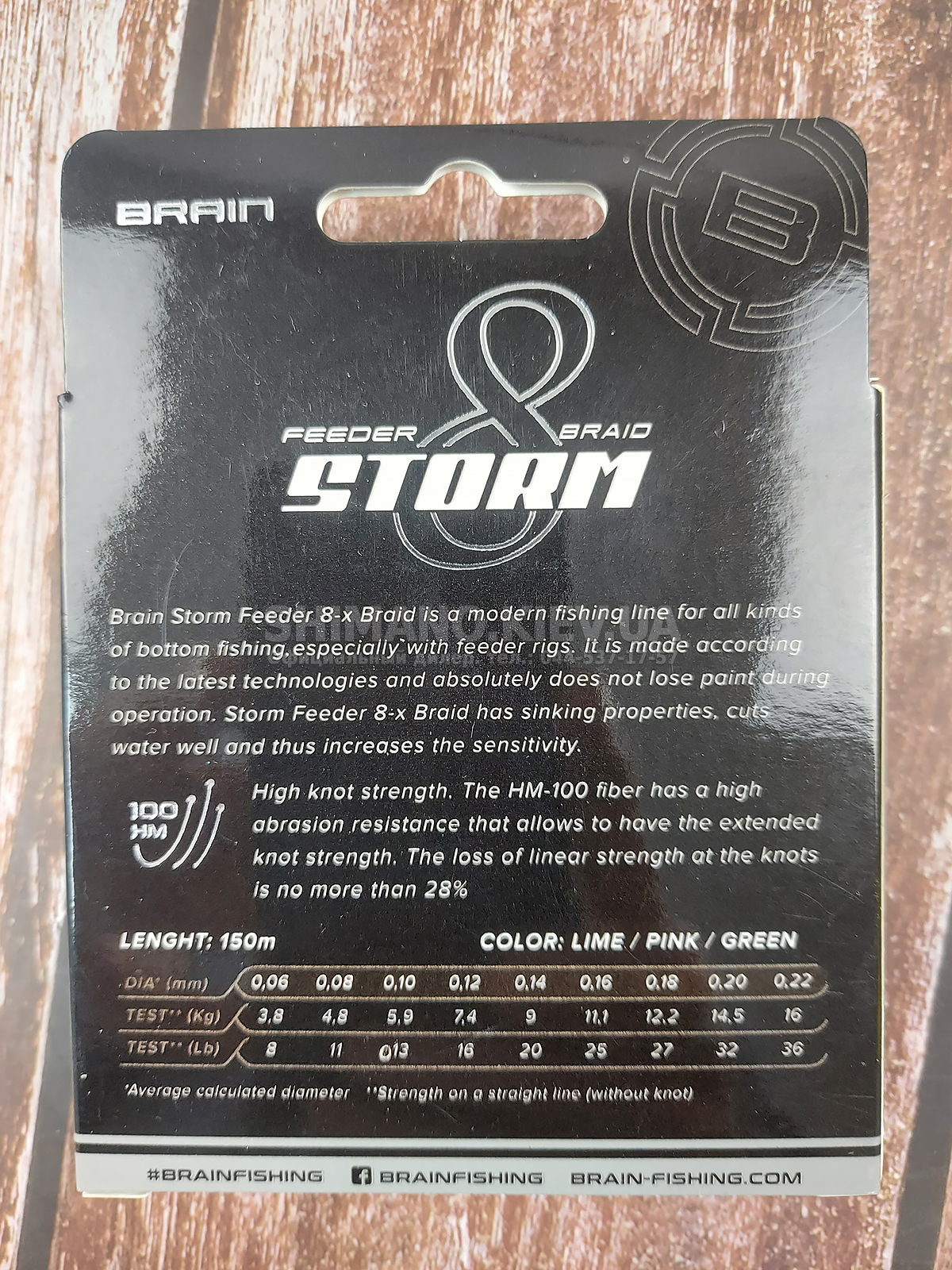 Шнур Brain Storm 8X - современная плетенка, подходящая под разные виды рыбалки, особенно под фидерную. Он обладает высокой абразивостойкостью и тонущими характеристиками, поэтому хорошо прорезает воду, повышая чувствительность снасти, а также менее подвержен износу при постоянных контактах с дном. Шнур имеет плотное плетение из 8-ми тончайших волокон с последующей поверхностной обработкой, благодаря чему очень гладким и скользким, что положительно сказывается на дальности заброса. Для производства использовано современное волокно HM-100, которое хорошо противостоит износу и имеет минимальные потери прочности на узлах, позволяя рыбалке использовать более тонкие диаметры для рыбалки, чем обычно.