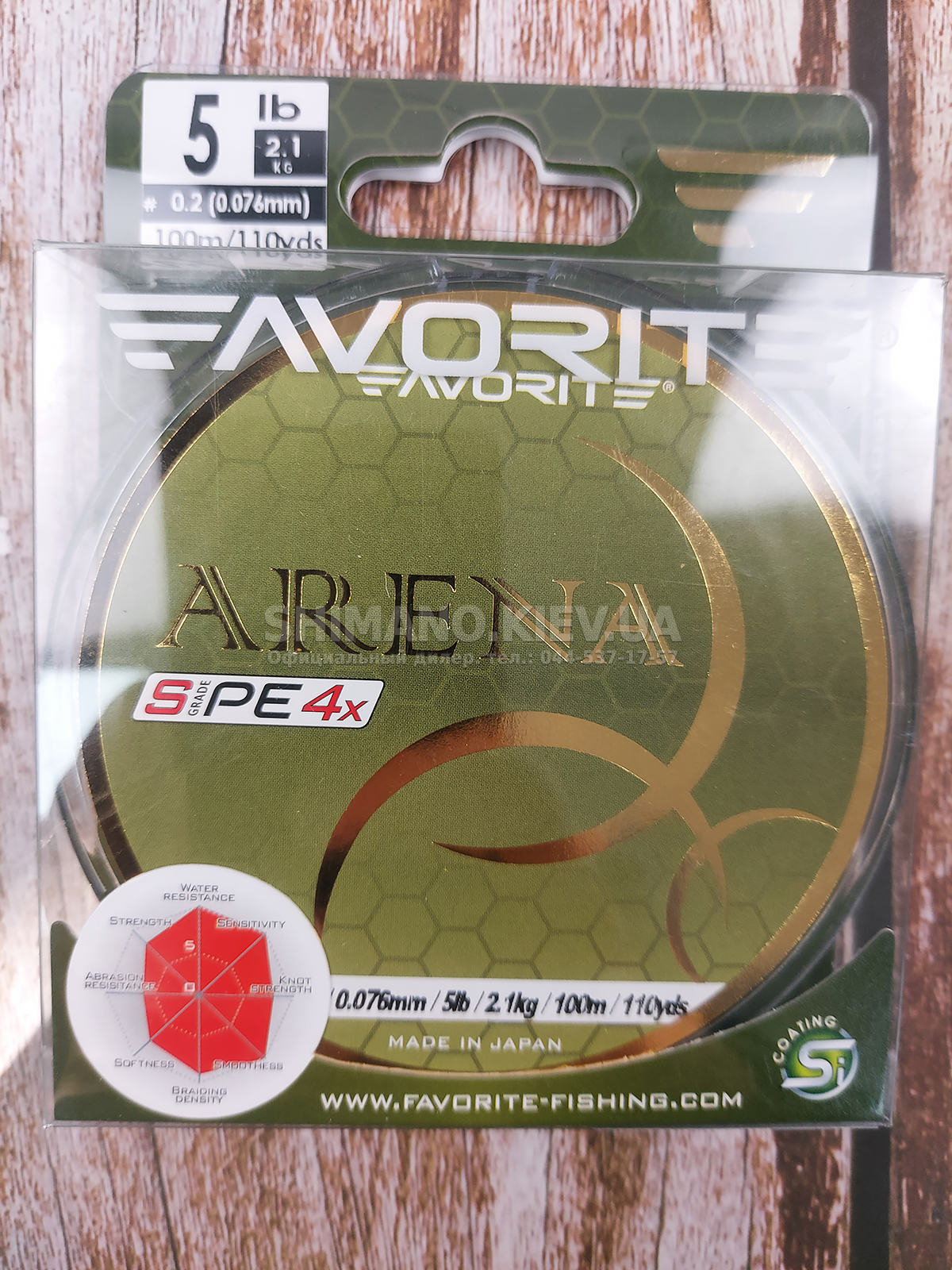 Шнур Favorite Arena PE – четырехжильный специализированный ареа шнур, разработанный для ловли ультралайтовыми снастями. Выполнен из современного высокопрочного материала S-Grade PE с очень плотным плетением. Благодаря этому удалось выпустить очень тонкую и круглую нить, обладающую высокой чувствительностью и разрывной нагрузкой. Силиконовое покрытие Si-coating (Silicone Coating) делает поверхность шнура гладкой и скользкой, что уменьшает трение в кольцах, позволяет добиться высокой дальности заброса и предотвращает впитывание воды. Шнур выпускается в двух цветах: пурпурный – яркий и заметный для максимального контроля проводки и серо-стальной – минимально заметный в воде, для ловли очень осторожной рыбы. Современная технология окрашивания LP (Lifetime Painting) позволяет на длительное время сохранить насыщенный цвет шнура.