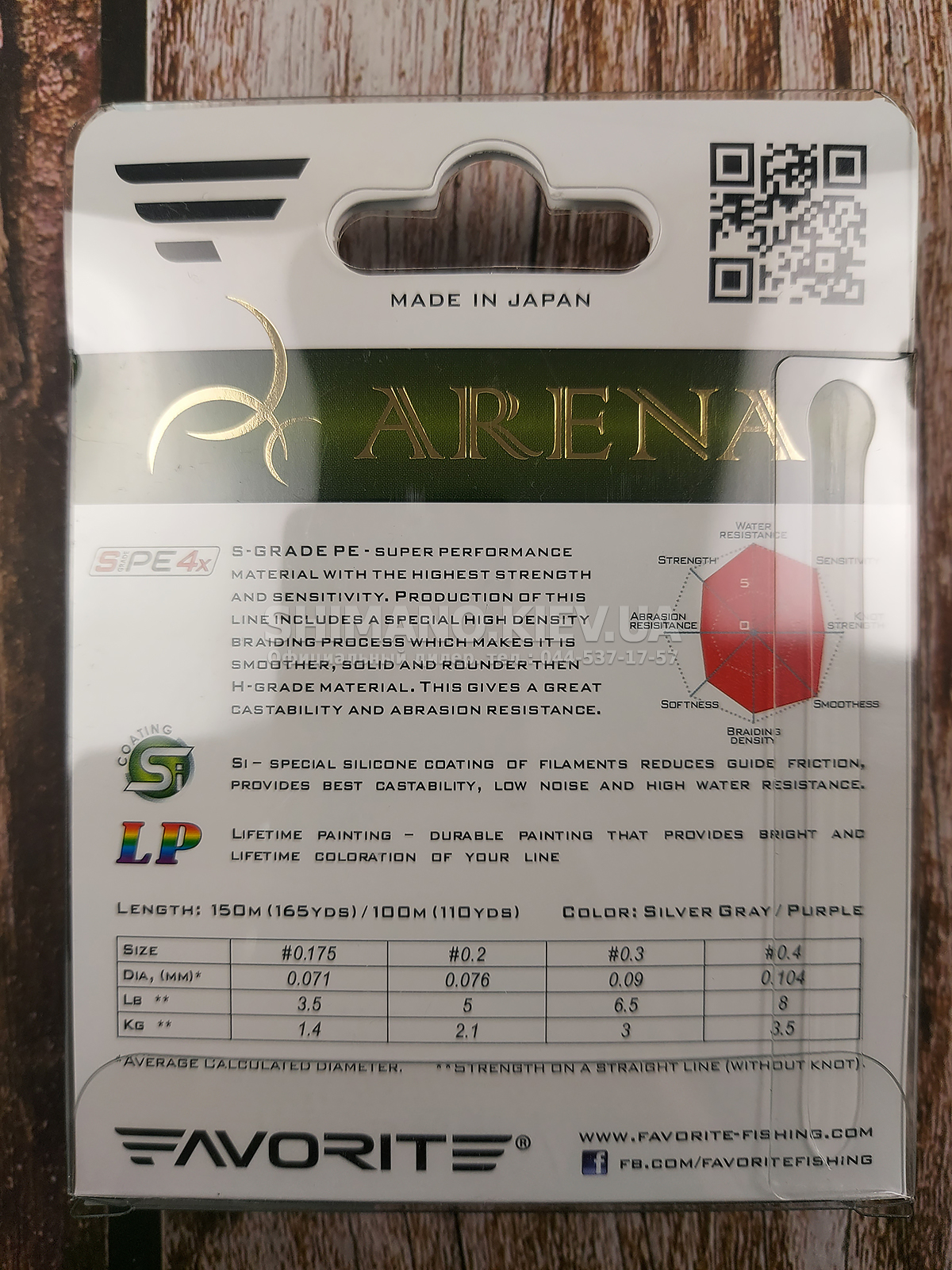 Шнуры Favorite Arena PE выпускаются только в тонких размерах от #0.175 до #0.4 по японской нумерации. Поэтому они лучше всего подходят для форелевой ловли и других видов ультралайтовой рыбалки, например микроджига.