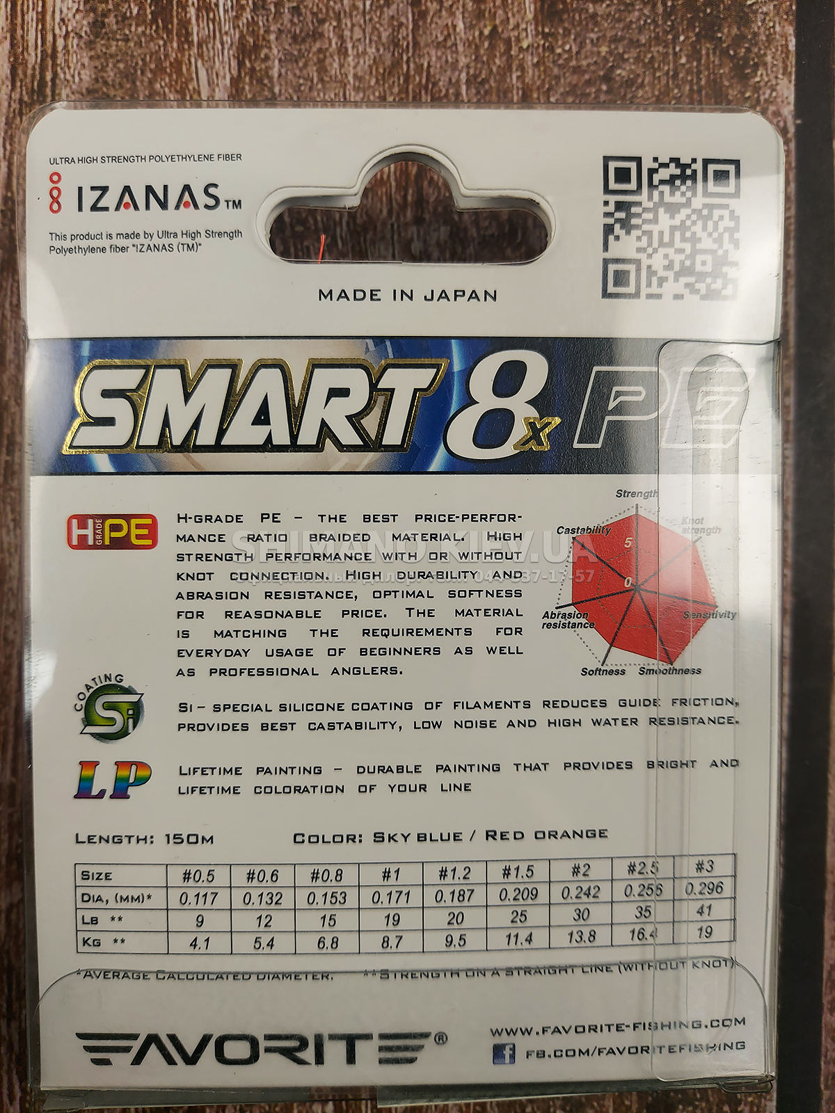 Шнур Favorite Smart PE 8x рекомендован для тех видов спиннинговой рыбалки, где необходим дальний заброс и высокая чувствительность снасти, например, ловля на блёсны и воблеры или глубинный джиг.