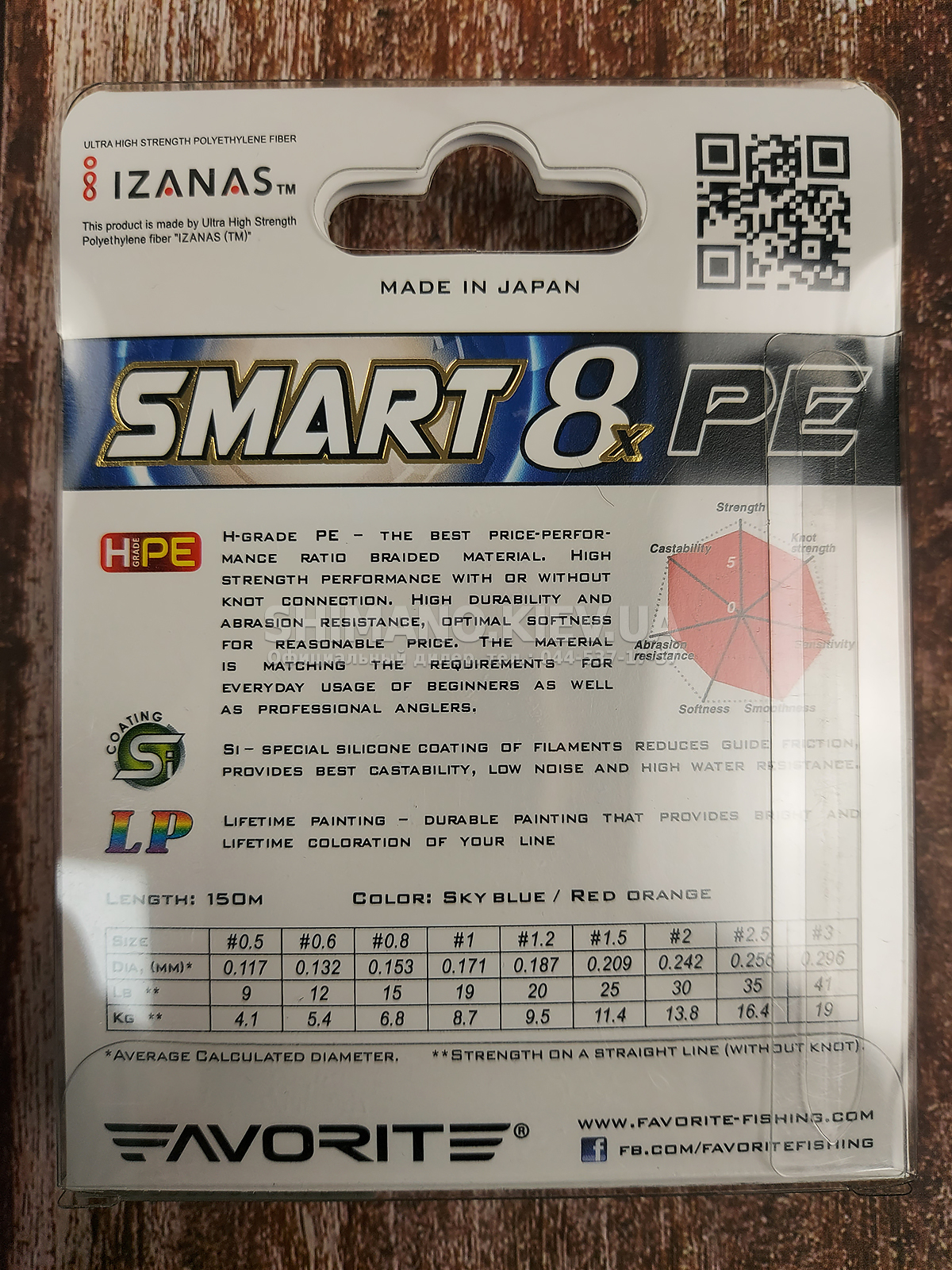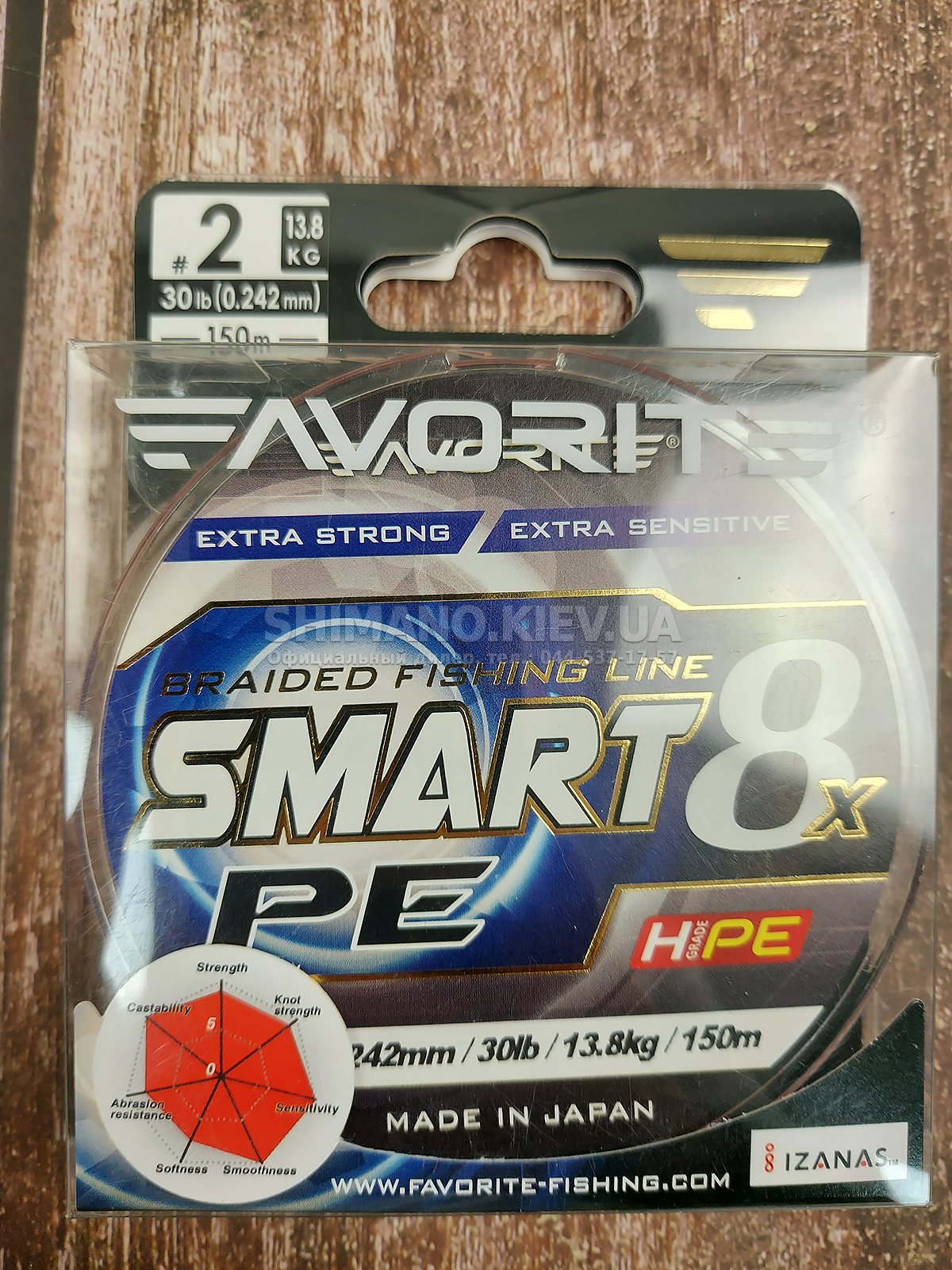 Шнур Favorite Smart PE 8x рекомендован для тех видов спиннинговой рыбалки, где необходим дальний заброс и высокая чувствительность снасти, например, ловля на блёсны и воблеры или глубинный джиг.