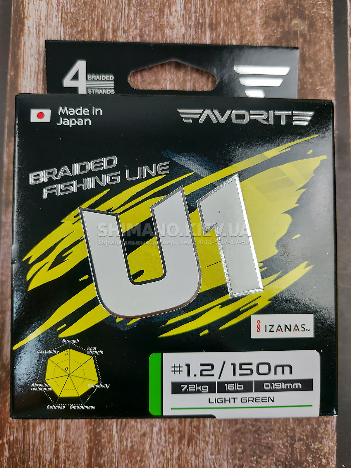 Шнур Favorite U1 PE 4x 150m (light green) #1.2/0.191mm 16lb/7.2kg