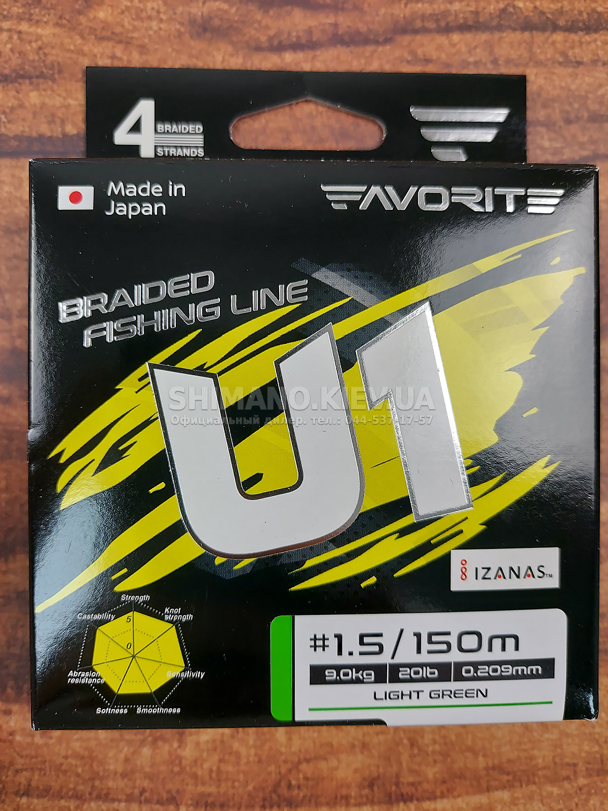 Шнур Favorite U1 PE 4x 150m (light green) #1.5/0.209mm 20lb/9.0kg