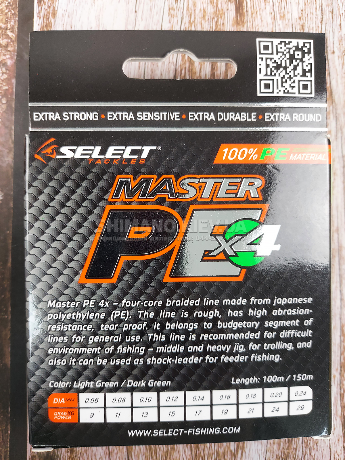 Шнуры SELECT Master PE производятся из японского материала Nippon Dyneema PE в Тайване.