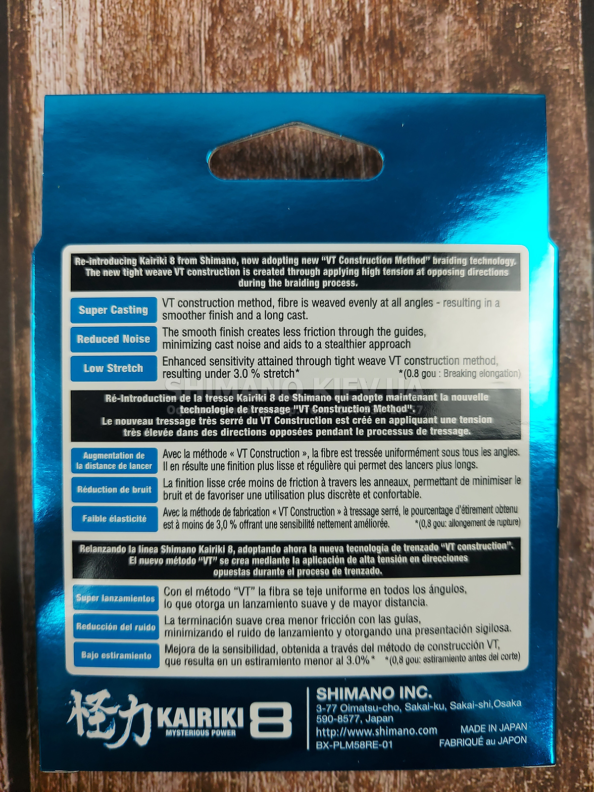 Новый Kairiki 8 PE от Shimano - это новая версия первого Kairiki, сделанного в Японии, с технологией плетения под названием "Метод конструирования VT".