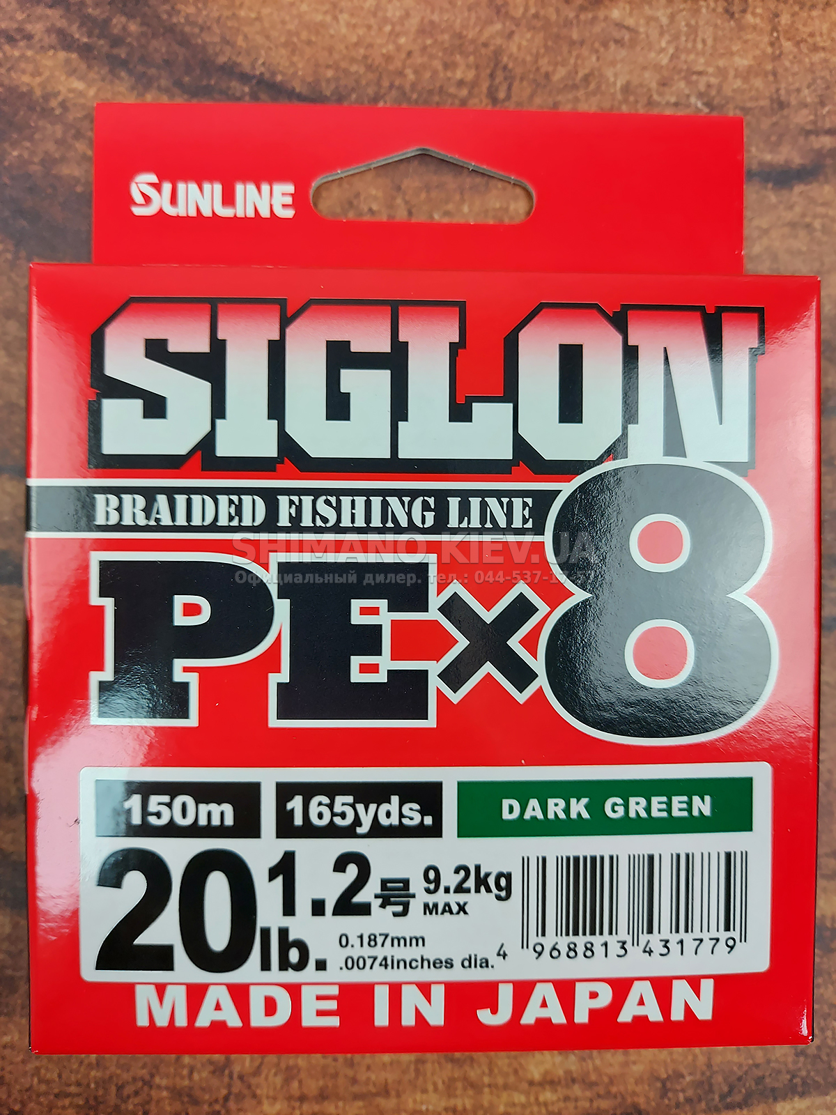 Шнур Sunline Siglon PE х8 150m (темн-зел.) #1.2/0.187mm 20lb/9.2kg