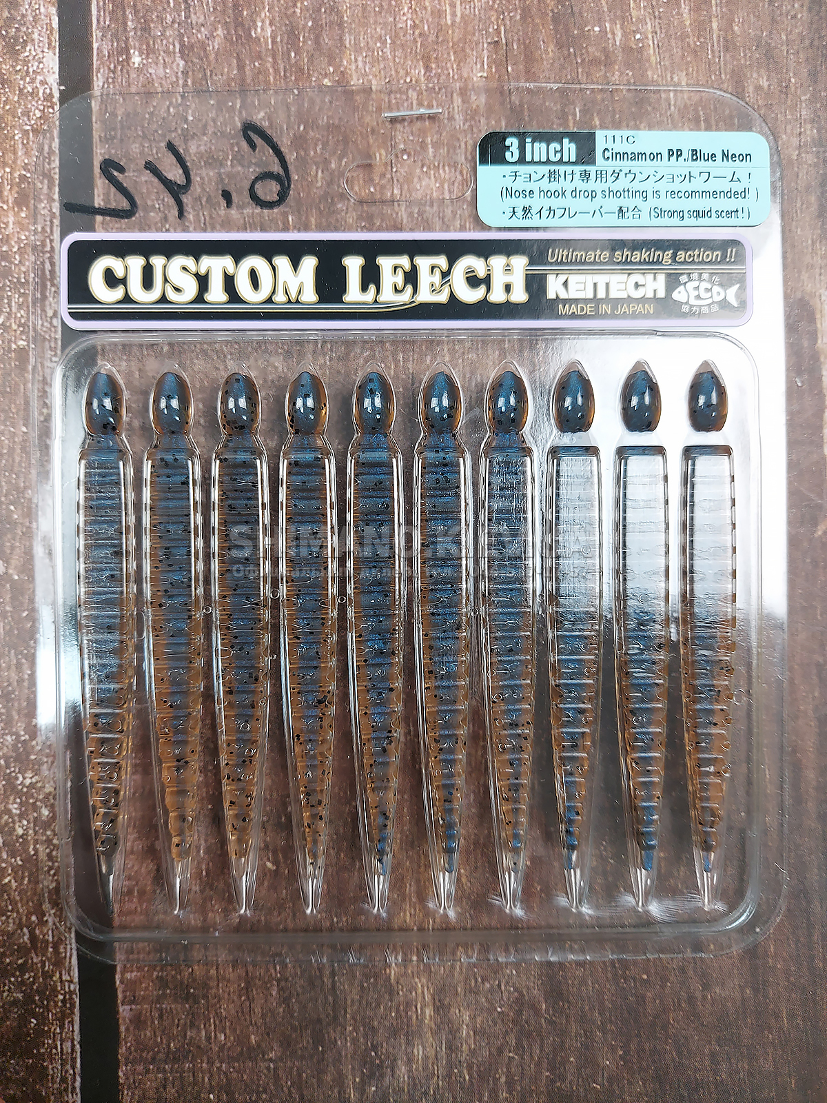 Силикон Keitech Custom Leech – новое поколение мягких приманок от именитой японской компании, которая не перестаёт удивлять своих поклонников оригинальностью форм и материалов. Данная модель по своему внешнему виду и поведению в воде больше походит на пиявку, хотя отчасти может напоминать и малька, копошащегося у дна. Благодаря своему необычному строению – маленькое утолщение, сразу переходящее в длинный сегментный хвост с тонкими перегородками - Custom Leech обладает просто невероятной подвижностью, реагируя на малейшие движения, осуществляемые рыболовом во время проводки.