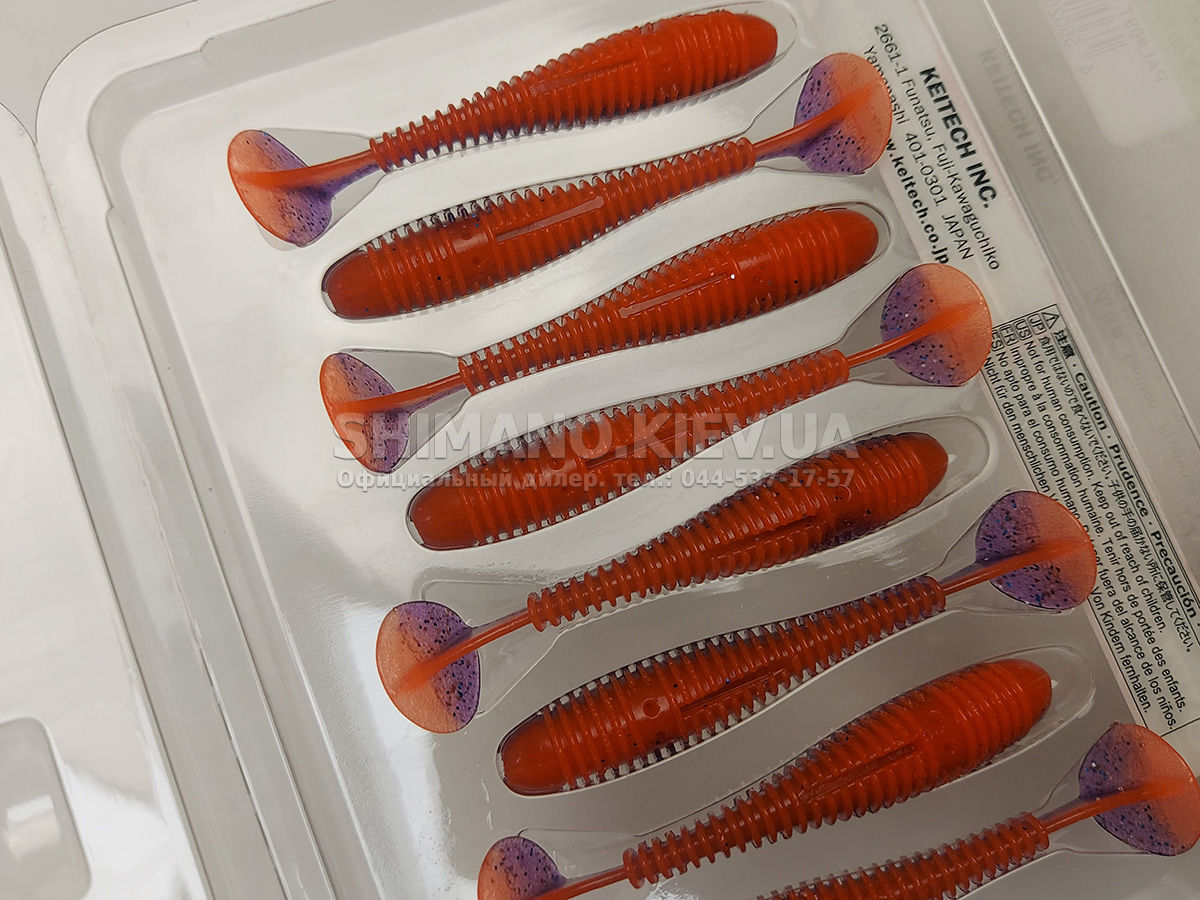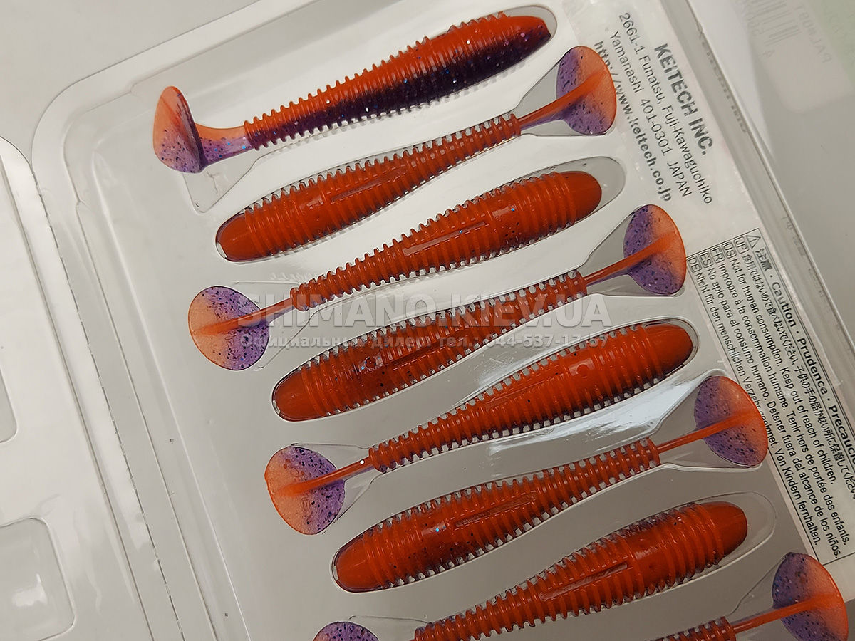 Силикон Keitech Swing Impact Fat - «Толстая» версия Swing Impact. Имеет более короткое и мясистое тело. Благодаря ребристости и широкой подвижной пятке создает в воде более мощные колебания, чем обычная версия.