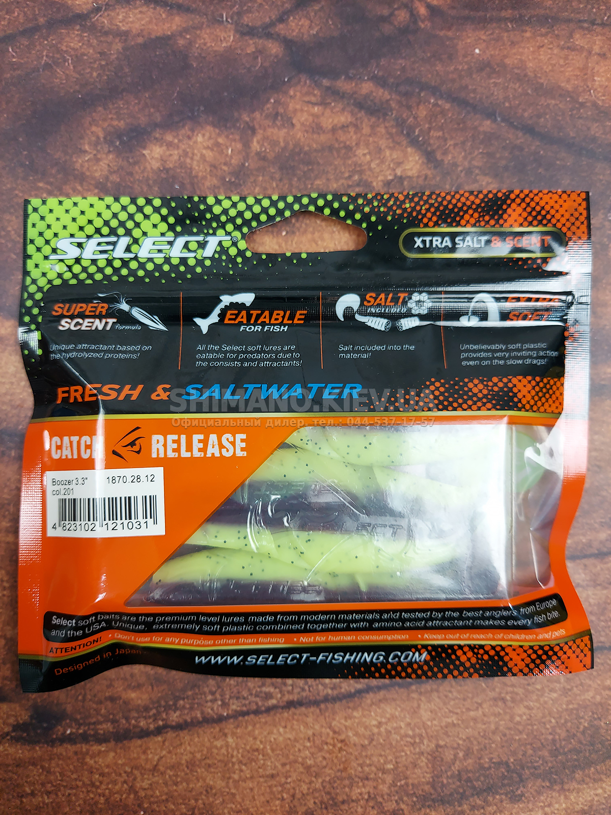 SELECT Boozer — съедобный виброхвост с объемным телом, массивной пяткой и необычной формой хвоста. Именно форма хвоста, а точнее хвостовые прорези в виде карманов делают эту приманку уникальной! Во время движения вода попадает в эти карманы и моментально включает хвост, благодаря чему приманка играет на любой, даже самой малой скорости проводки. Также это позволяет использовать самые малые веса, а значит SELECT Boozer идеально подходит для рыбалки как на реках, так и на мелководных озерах.