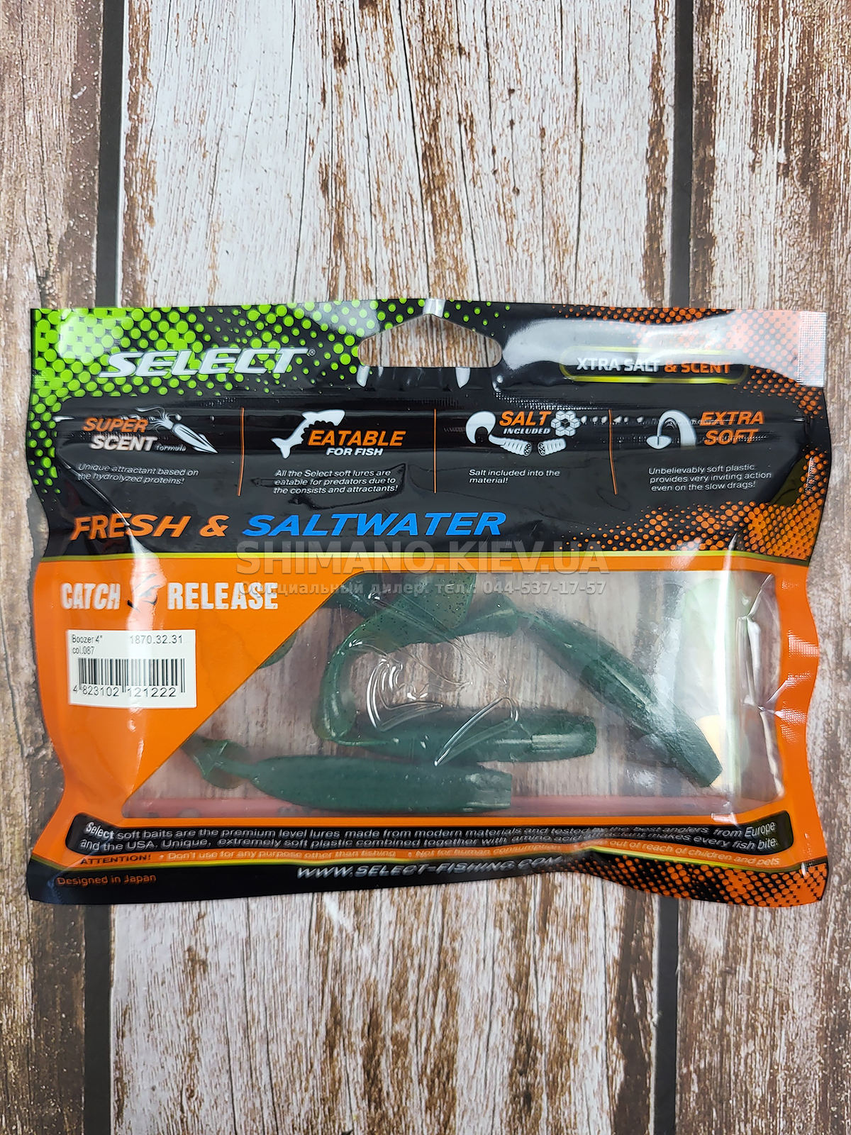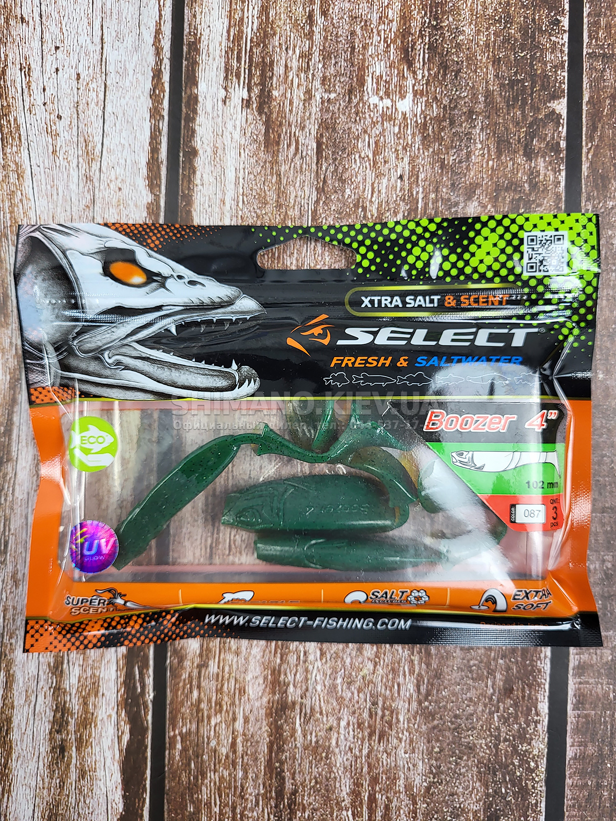 SELECT Boozer — съедобный виброхвост с объемным телом, массивной пяткой и необычной формой хвоста. Именно форма хвоста, а точнее хвостовые прорези в виде карманов делают эту приманку уникальной! Во время движения вода попадает в эти карманы и моментально включает хвост, благодаря чему приманка играет на любой, даже самой малой скорости проводки. Также это позволяет использовать самые малые веса, а значит SELECT Boozer идеально подходит для рыбалки как на реках, так и на мелководных озерах.