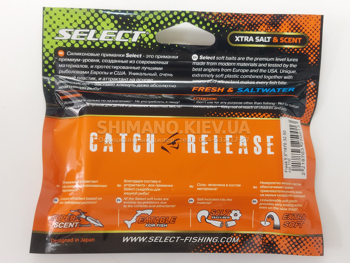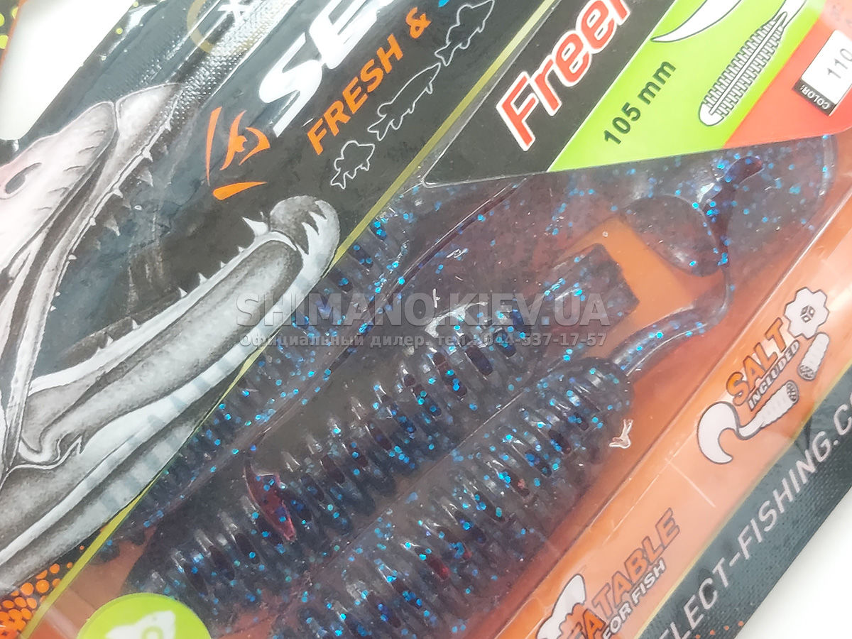 Новейшая приманка SELECT Freek. Ее мясистое тело и широкий хвост идеально подходят для лова судака, активного окуня и вечно голодной щуки. Необычная форма хвоста и специально подобранный силикон моментально включают приманку в игру, как на любой скорости проводки, так и на подбросе или в падении. Все это позволяет делать самую разную анимацию и успешно привлекать хищника по любой воде. Также стоит отметить, что более плотное и широкое тело идеально подходит для разных типов оснастки, включая классический джиг и двойные крючки. Для достижения максимального эффекта, рекомендуем использовать шарнирный монтаж: дроп-шот, каролина, отводной поводок или груз «чебурашка». Как всегда, представлена огромная гамма цветов и в будущем — размеров.