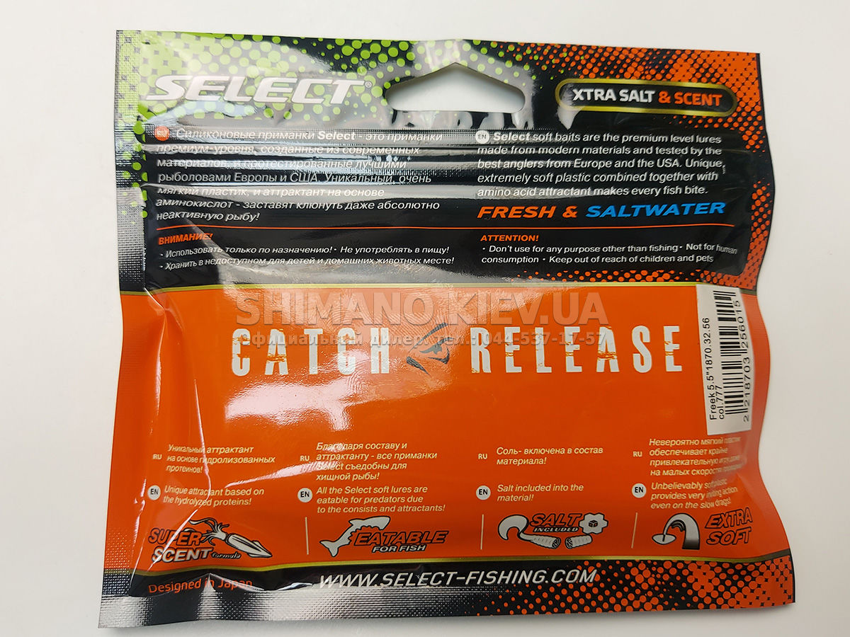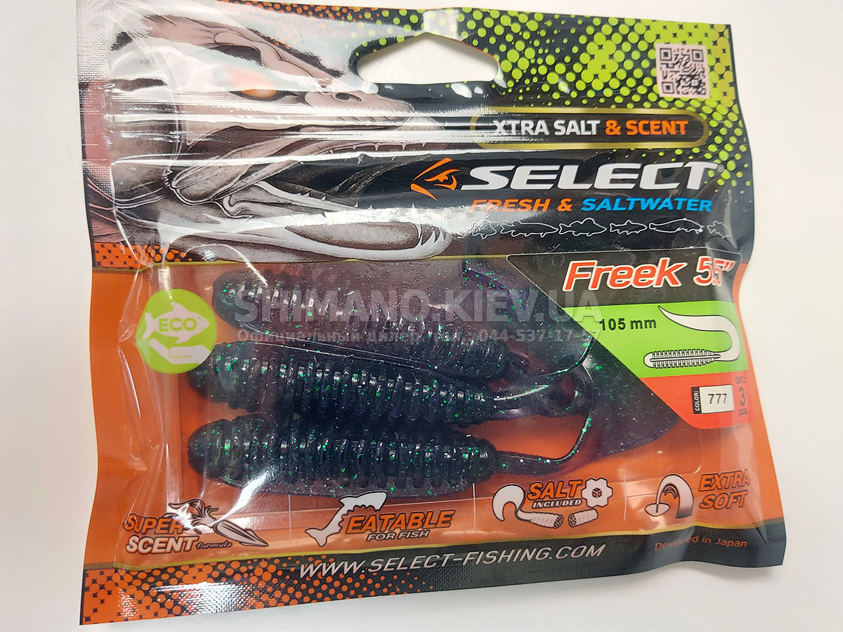 Новейшая приманка SELECT Freek. Ее мясистое тело и широкий хвост идеально подходят для лова судака, активного окуня и вечно голодной щуки. Необычная форма хвоста и специально подобранный силикон моментально включают приманку в игру, как на любой скорости проводки, так и на подбросе или в падении. Все это позволяет делать самую разную анимацию и успешно привлекать хищника по любой воде. Также стоит отметить, что более плотное и широкое тело идеально подходит для разных типов оснастки, включая классический джиг и двойные крючки. Для достижения максимального эффекта, рекомендуем использовать шарнирный монтаж: дроп-шот, каролина, отводной поводок или груз «чебурашка». Как всегда, представлена огромная гамма цветов и в будущем — размеров.