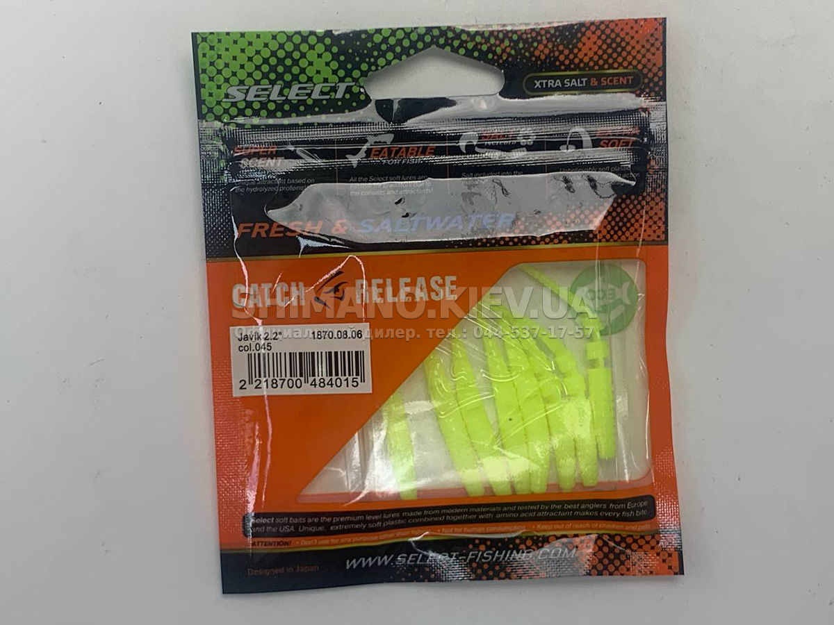 Select Javik является отличным примером имитации червя сложной формы, входящим в рацион питания большинства пресноводных рыб. Располагающиеся на срединно-хвостовом участке приманки изящные сегменты позволяют реализовывать природные движения червеобразных, а высокие съедобные свойства силиконового материала выступают дополнительным фактором к атаке приманки подводными обитателями.