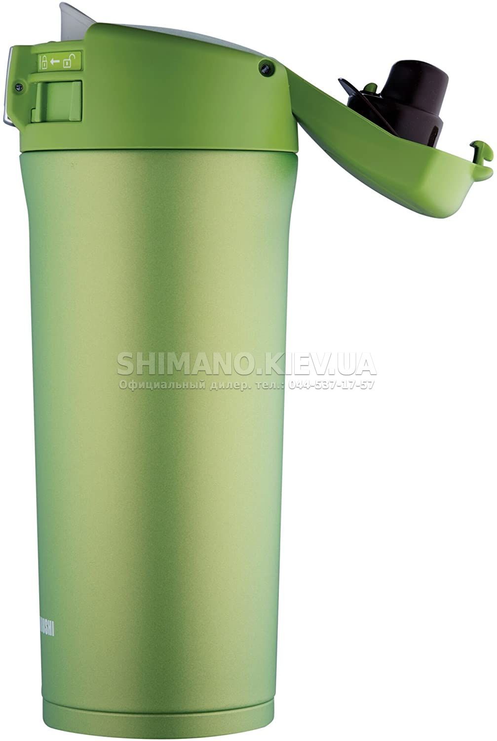 Уникальная крышка, которая автоматически открывается после одного нажатия, при этом механизм сконструирован так, чтобы предотвратить появление брызг при открывании. После нажатия кнопки, крышка немного приоткрывается, давая возможность стечь образовавшимся каплям. Полностью крышка распахнется только после того, как вы отпустите кнопку. Также крышка дополнительно оснащена блокировкой от случайного нажатия на кнопку открытия. Данную крышку с поилкой можно заменить на стандартную крышку Зоджируси, превратив таким образом термокружку в классический термос.
