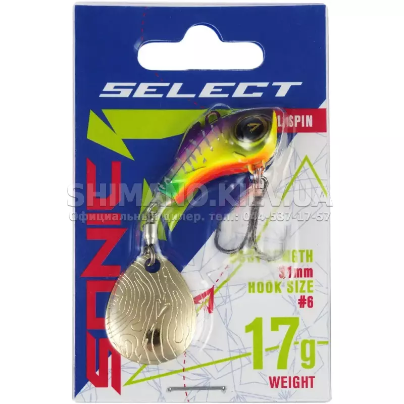 Тейл-спінер Select Sonic - це нова модель в лінійці приманок Select. Тейл-спінер Select Sonic відноситься до такого типу приманок, які користуються великою популярністю серед рибалок-спінінгістів. Він поєднує в собі вертушку, пілкер та ратлін по своїй роботі, але в той же час має свої особливості. Важке компактне свинцеве тіло у формі рибки дозволяє робити максимально далекі закидання. Навіть зустрічний або бічний вітер не завадить доставити приманку в потрібну точку. В тейл-спінері використовується стандартна краплеподібна пелюстка, змонтована на вертлюжці з підшипником, що забезпечує легкий старт приманки та її стабільну роботу. Спеціальний кембрик у місці кріплення пелюстки запобігає його перекручуванню під час закидання.Select Sonic можна спокійно назвати джиговою вертушкою, адже її основний робочий горизонт – це придонні ділянки. Ще одна перевага цієї приманки - вона зовсім не крутить шнур. Під час проводки пелюстка обертається, а тіло активно вібрує та стабілізує положення блешні у воді. Найбільш підходящий час для цієї приманки починається в другій половині весни і закінчується пізньої осені. Тейл-спінер Select Sonic чудово підійде для лову судака, щуки, жереха, окуня та деяких інших видів риб. Випускається у 4 розмірах: 7г, 10г, 13г, 17г.
