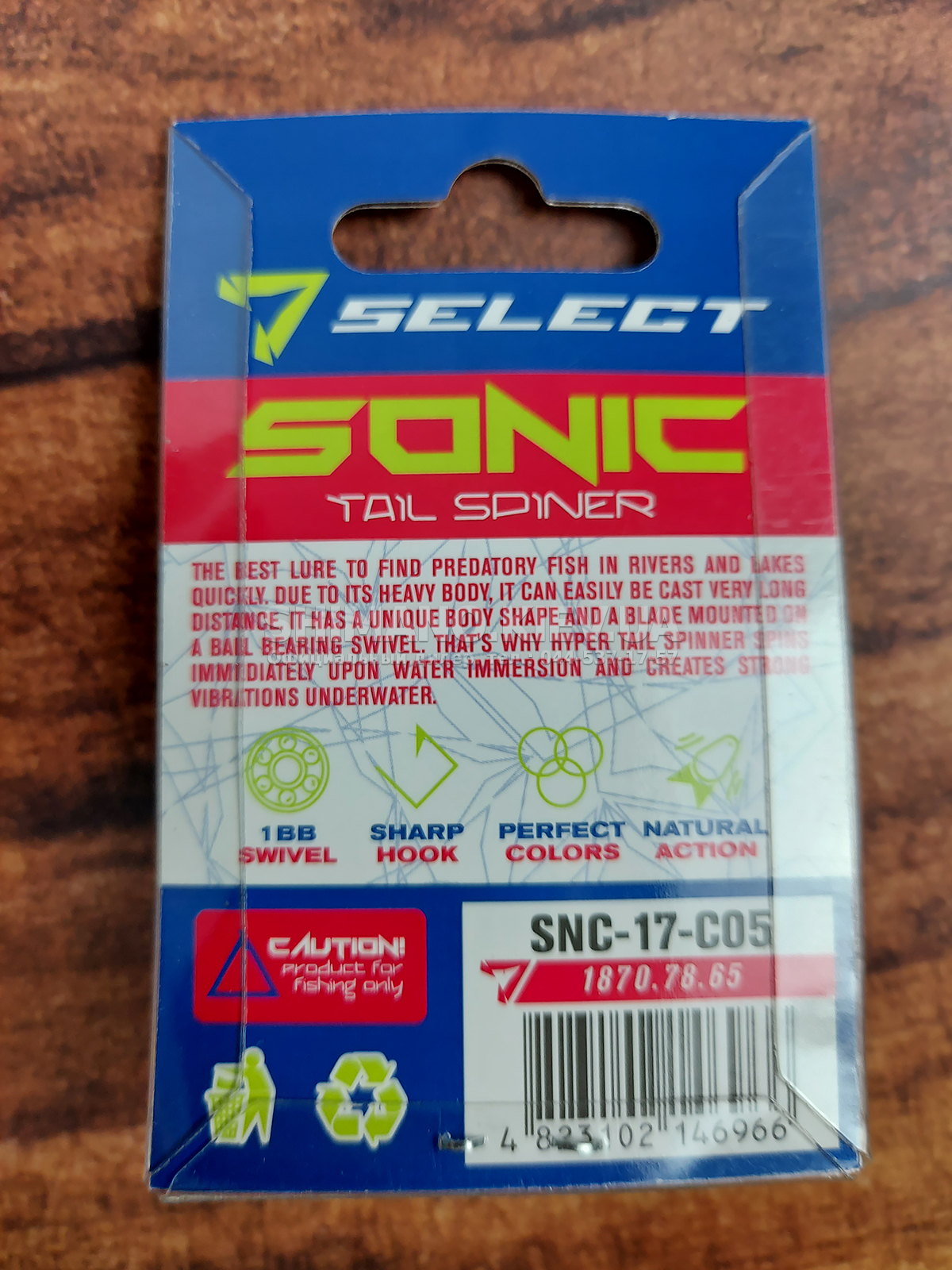 Тейл-спінер Select Sonic - це нова модель в лінійці приманок Select. Тейл-спінер Select Sonic відноситься до такого типу приманок, які користуються великою популярністю серед рибалок-спінінгістів. Він поєднує в собі вертушку, пілкер та ратлін по своїй роботі, але в той же час має свої особливості. Важке компактне свинцеве тіло у формі рибки дозволяє робити максимально далекі закидання. Навіть зустрічний або бічний вітер не завадить доставити приманку в потрібну точку. В тейл-спінері використовується стандартна краплеподібна пелюстка, змонтована на вертлюжці з підшипником, що забезпечує легкий старт приманки та її стабільну роботу. Спеціальний кембрик у місці кріплення пелюстки запобігає його перекручуванню під час закидання.Select Sonic можна спокійно назвати джиговою вертушкою, адже її основний робочий горизонт – це придонні ділянки. Ще одна перевага цієї приманки - вона зовсім не крутить шнур. Під час проводки пелюстка обертається, а тіло активно вібрує та стабілізує положення блешні у воді. Найбільш підходящий час для цієї приманки починається в другій половині весни і закінчується пізньої осені. Тейл-спінер Select Sonic чудово підійде для лову судака, щуки, жереха, окуня та деяких інших видів риб. Випускається у 4 розмірах: 7г, 10г, 13г, 17г.