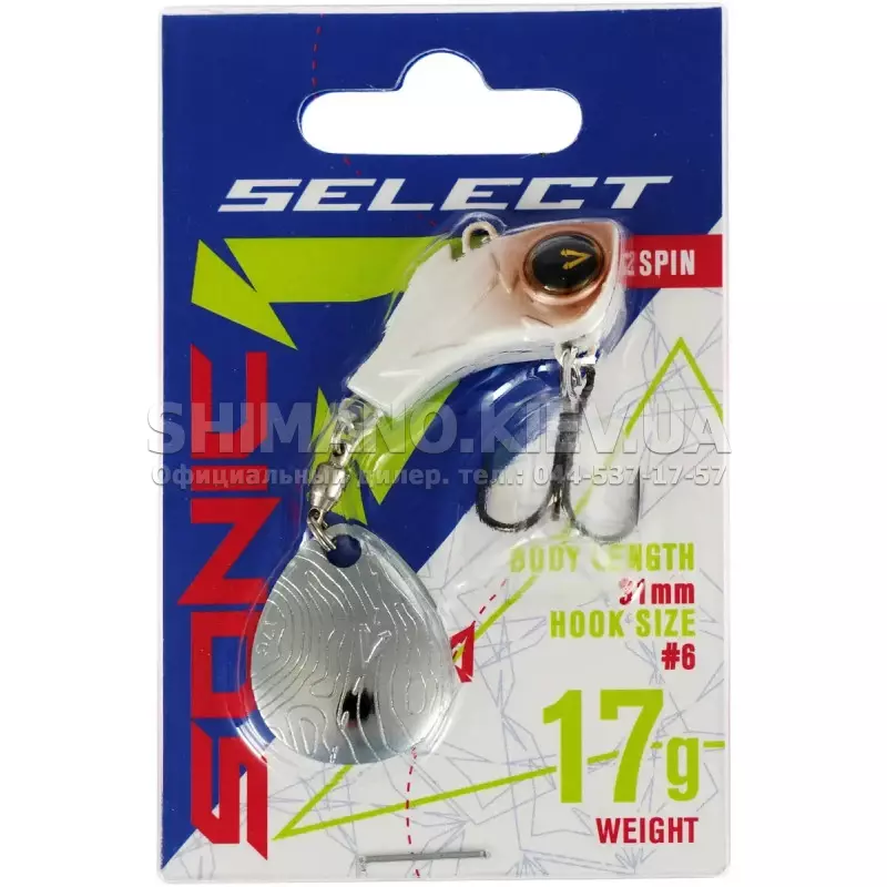 Тейл-спінер Select Sonic - це нова модель в лінійці приманок Select. Тейл-спінер Select Sonic відноситься до такого типу приманок, які користуються великою популярністю серед рибалок-спінінгістів. Він поєднує в собі вертушку, пілкер та ратлін по своїй роботі, але в той же час має свої особливості. Важке компактне свинцеве тіло у формі рибки дозволяє робити максимально далекі закидання. Навіть зустрічний або бічний вітер не завадить доставити приманку в потрібну точку. В тейл-спінері використовується стандартна краплеподібна пелюстка, змонтована на вертлюжці з підшипником, що забезпечує легкий старт приманки та її стабільну роботу. Спеціальний кембрик у місці кріплення пелюстки запобігає його перекручуванню під час закидання.Select Sonic можна спокійно назвати джиговою вертушкою, адже її основний робочий горизонт – це придонні ділянки. Ще одна перевага цієї приманки - вона зовсім не крутить шнур. Під час проводки пелюстка обертається, а тіло активно вібрує та стабілізує положення блешні у воді. Найбільш підходящий час для цієї приманки починається в другій половині весни і закінчується пізньої осені. Тейл-спінер Select Sonic чудово підійде для лову судака, щуки, жереха, окуня та деяких інших видів риб. Випускається у 4 розмірах: 7г, 10г, 13г, 17г.