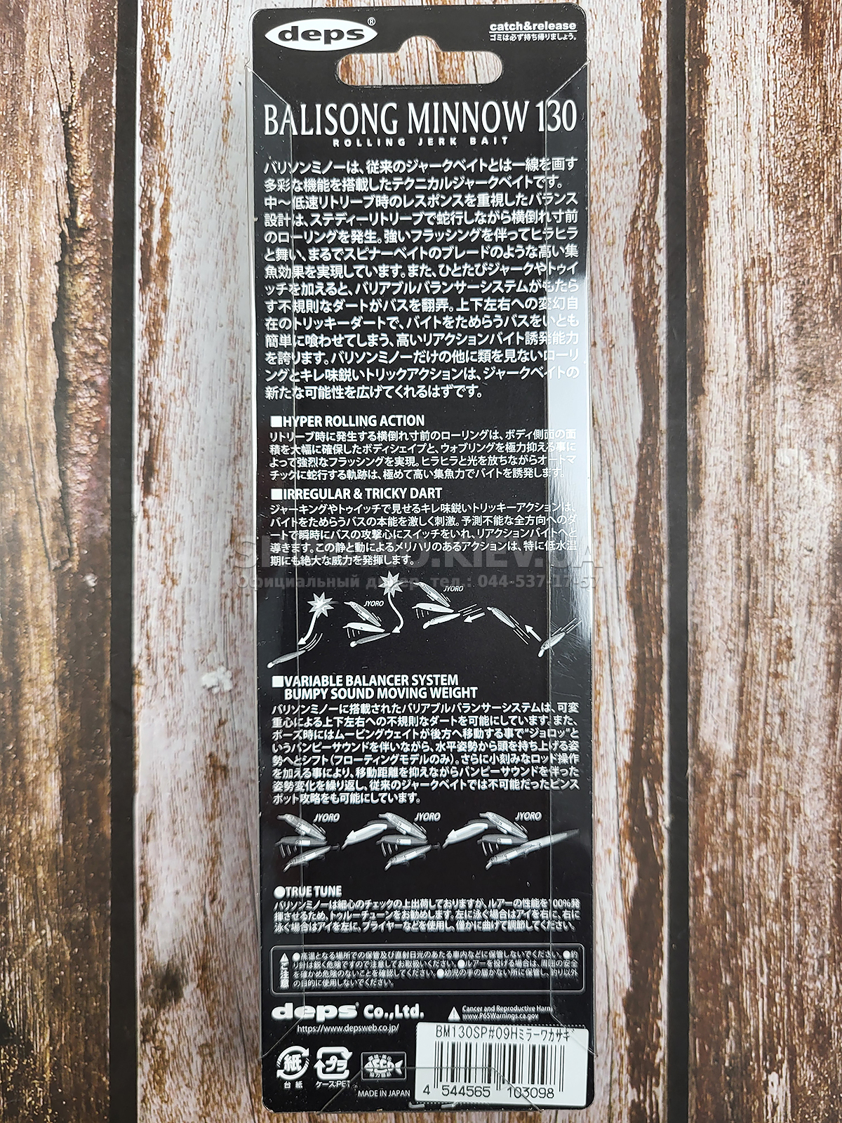 Воблер Deps Balisong Minnow акумулював усі основні властивості класичного джеркбейту типу мінноу. Лінійку складають кілька модельних рядів приманок розмірами 100 і 130 мм з позитивною плавучістю та суспендери. Воблери виготовляються із високоміцного ABS пластику для забезпечення належної міцності та надійності конструкції. Система балансування та далекого закидання PAT дозволяє досягти високої дальності та точності польоту та стабільної гри під час проведення. У якості вантажів у різних моделей використовуються сталеві або вольфрамові кульки. Воблери розміром 100 мм оснащуються двома потрійними гачками, 130 мм – трьома. Виробник рекомендує використовувати ривкову проводку при анімації воблерів серії Deps Balisong Minnow, за рахунок чого вдається досягти найефективнішої презентації. Воблер Deps Balisong Minnow розроблений провідними японськими експертами з урахуванням багатого досвіду та з використанням передових технологій та матеріалів. Його застосування на риболовлі гарантує високу ймовірність успіху при лові окуня щуки, судака та жереха.