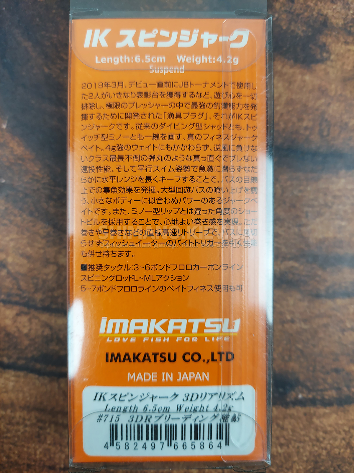 Отзывы Воблер Imakatsu IK Spin Jerk 65mm 4.2g #715 (0.5-1.0m)