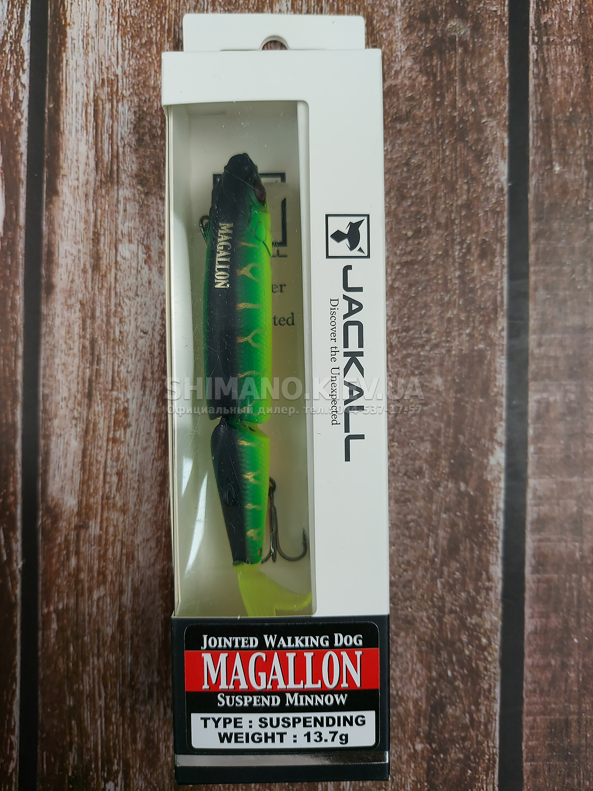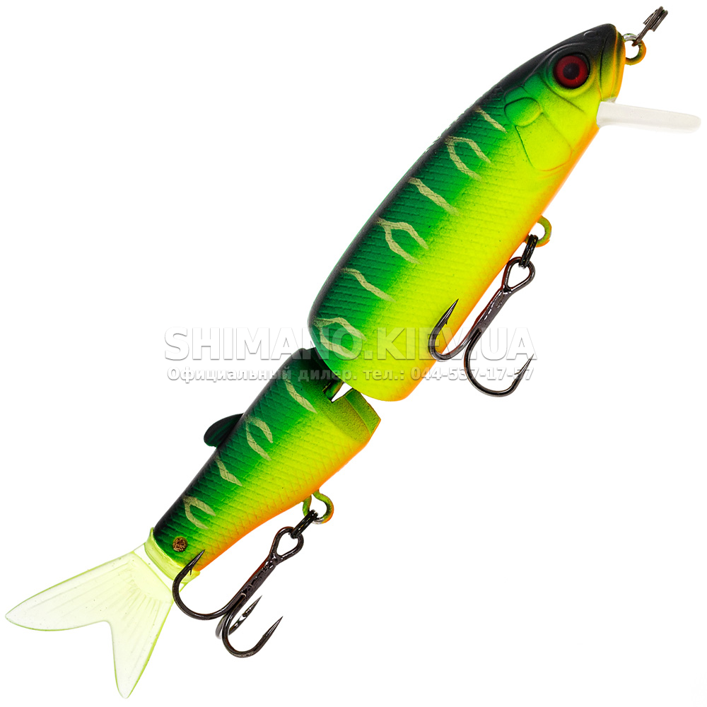Jackall Magallon – двухсоставной воблер с оригинальным дизайном. В хвостовой части располагается мягкий. но стойкий к щучим зубам. хвостик. который при проводке дополнительно соблазняет рыбу. Даже при малой амплитуде рывков спиннинга совершает размашистые развороты и кульбиты в воде. соблазняя даже не активного хищника.