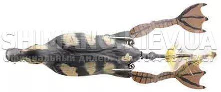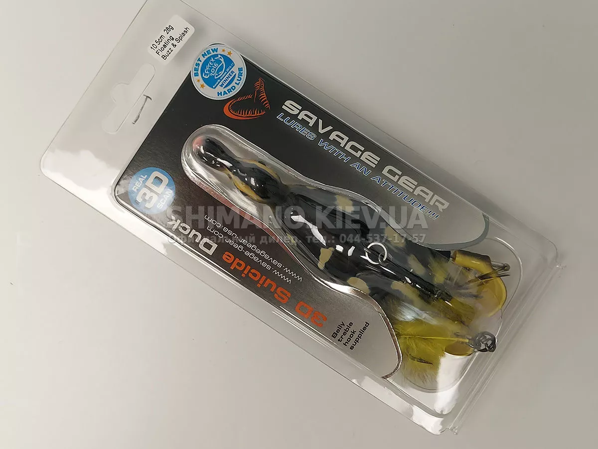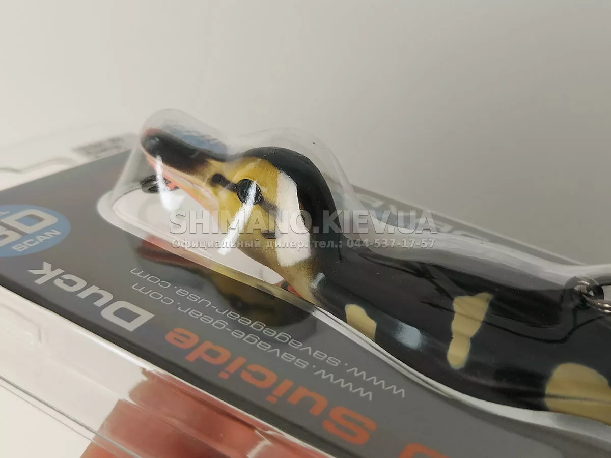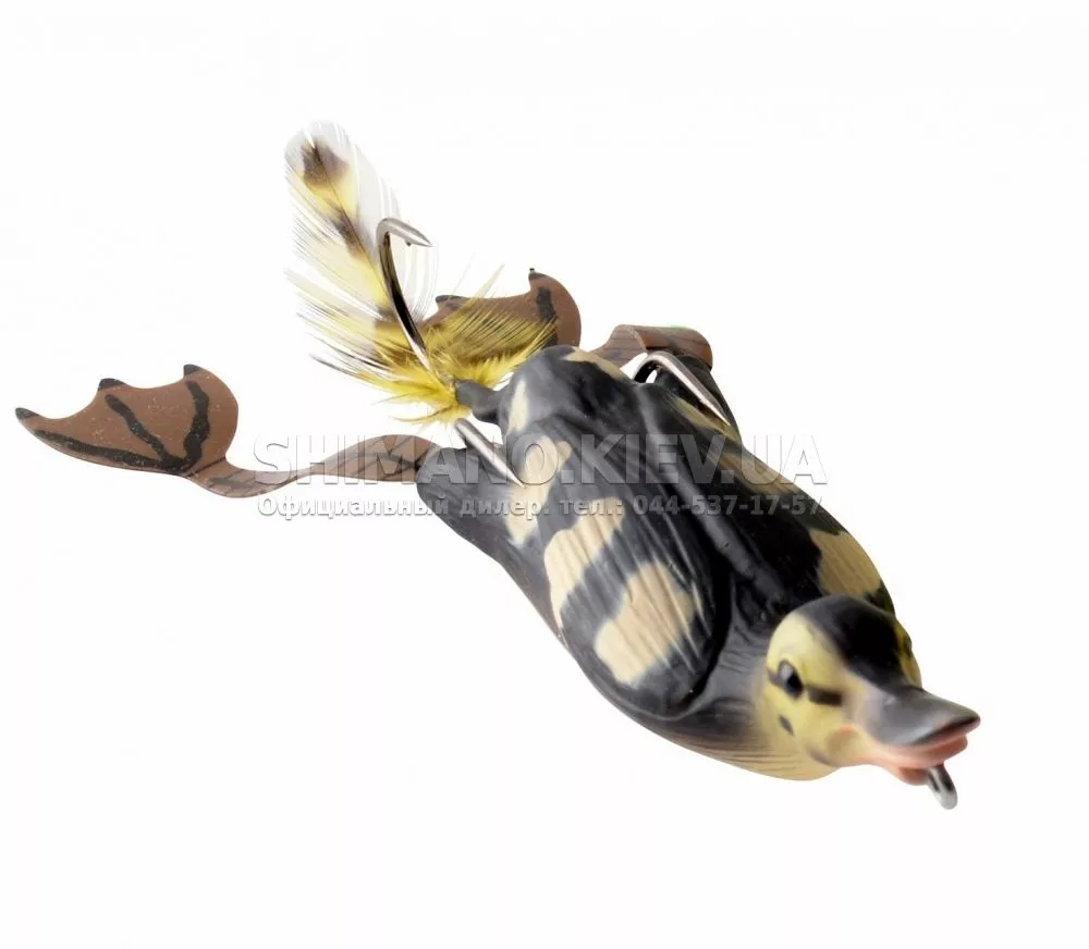 Воблер Savage Gear 3D Hollow Duckling – еще одна уникальная приманка от датской компании реалистично имитирующая утку. Эта модель 3D Hollow Duckling применима, как при ловле щуки в густо заросших травой и кувшинкой местах, так при ловле тайменя в северных реках сплавом. Приманка сконструирована таким образом, что оба крючка (двойной и одинарный) жестко зафиксированы и направленны вверх, что совершенно исключает сбор водной растительности. Тело приманки выполнено из мягкого пластика высокой плавучести, которое при поклевке зубастой хищницы без каких либо усилий сжимается, таким образом, не препятствует засечке рыбы. Этот «утенок» оснащен мягкими и подвижными лапками, а также креплением приманки под клювом, что в совокупности способно имитировать убегающую, создающую брызги птицу, таким образом, привлекая хищника с большего расстояния. В зависимости от стиля проводки приманка способна, как рыскать из стороны в сторону, так и создавать брызги. Перо на одинарном крючке одновременно стабилизирует игру приманки, делая ее плавной, а также служит точкой атаки.