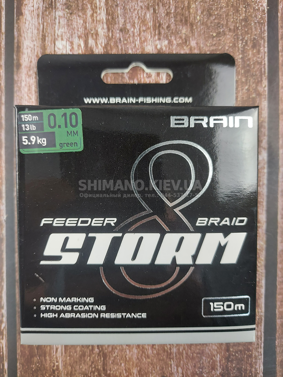 Шнур Brain Storm 8X - сучасна плетінка, що підходить під різні види риболовлі, особливо під фідерну. Він має високу абразивостійкість та тонучі характеристики, тому добре прорізає воду, підвищуючи чутливість снасті, а також менше схильний до зносу при постійних контактах з дном. Шнур має щільне плетіння з 8-ми найтонших волокон з подальшою поверхневою обробкою, завдяки чому є дуже гладким і слизьким, що позитивно позначається на дальності закидання. Для виробництва використано сучасне волокно HM-100, яке добре протистоїть зносу та має мінімальні втрати міцності на вузлах, дозволяючи рибалці використовувати більш тонкі діаметри для риболовлі, ніж зазвичай.