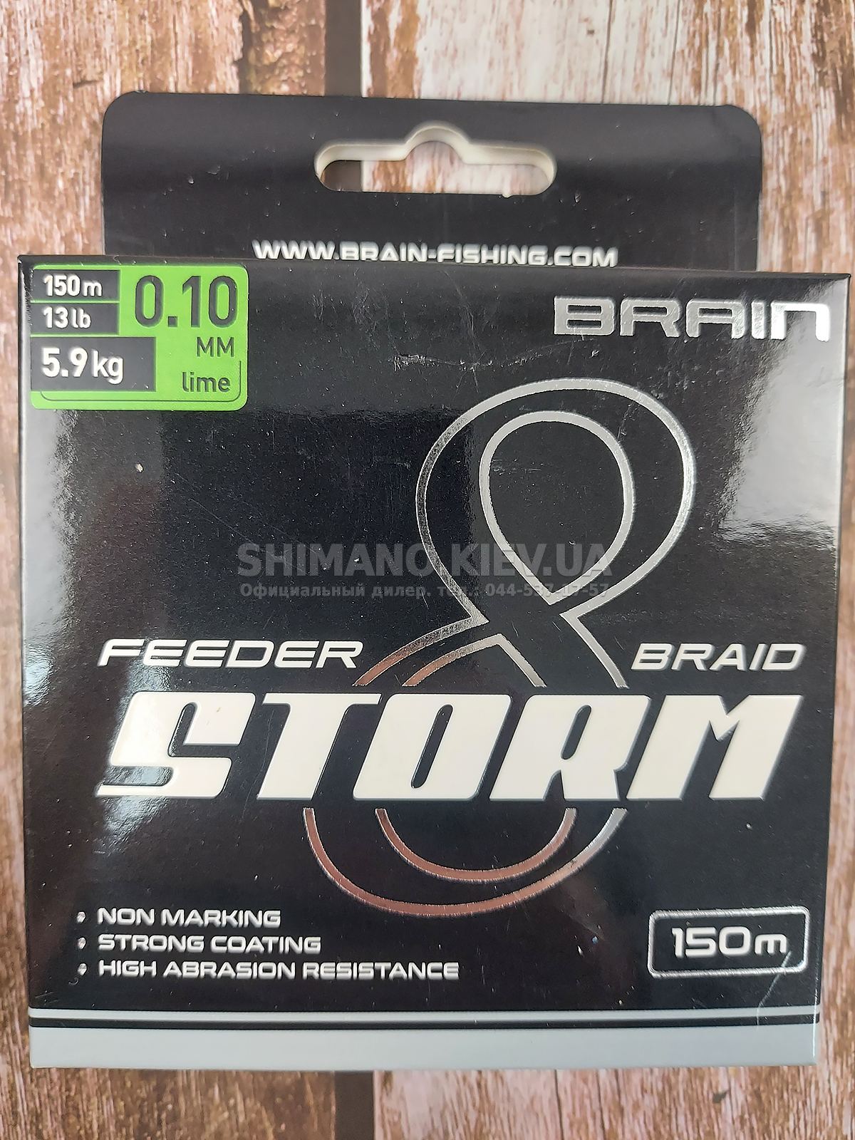 Шнур Brain Storm 8X виробляється в різних колірних варіантах, як темних, так і яскравих. При цьому він не втрачає своєї яскравості навіть після кількох виходів на активну риболовлю.