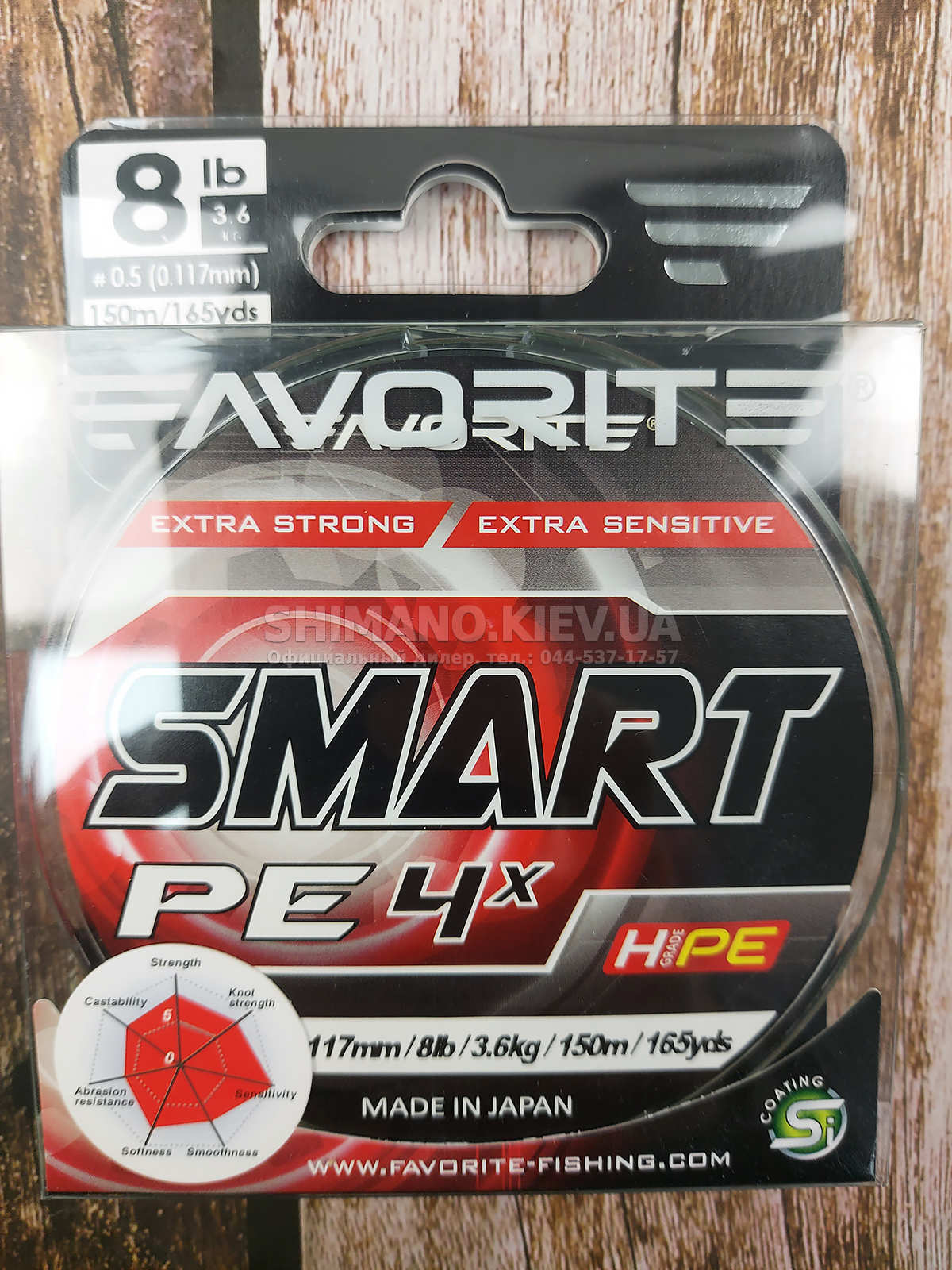 Шнур Favorite Smart PE вироблений в Японії, що, безумовно, говорить про його високій якості, а невисока ціна дозволяє сміливо назвати цю модель найкращою на ринку України за співвідношенням ціна – якість.