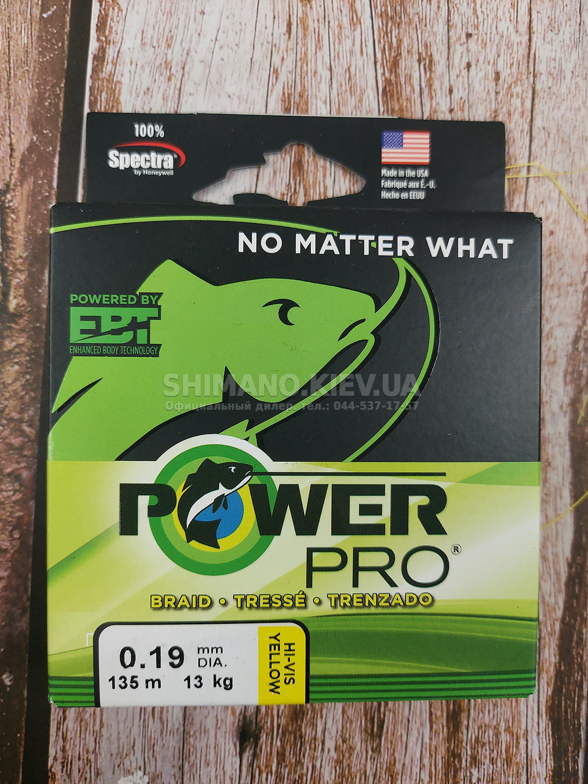 Шнур PowerPro Hi-Vis Yellow 135m d=0.19mm 13kg/28.6lb