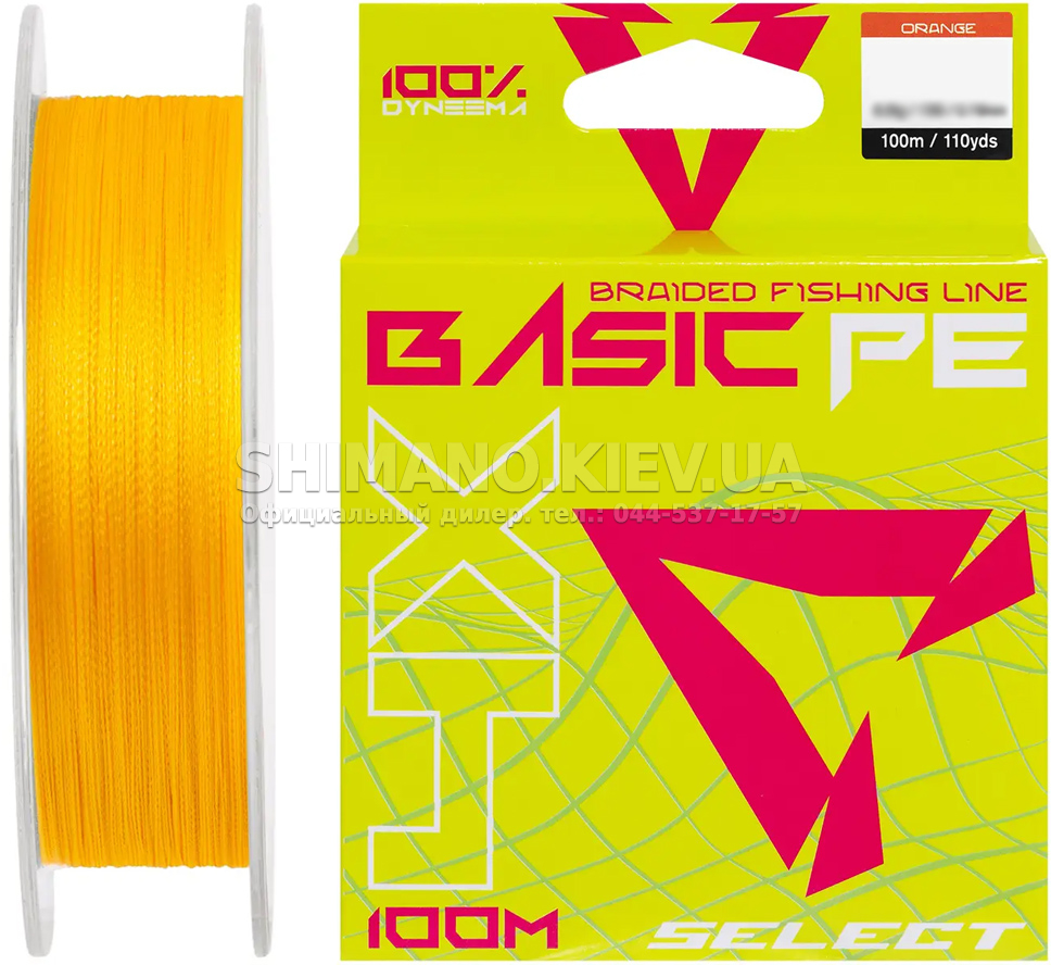 Шнур риболовний Select Basic PE 100m, 0.10mm, 10Lb/4.8kg, колір: помаранчевий