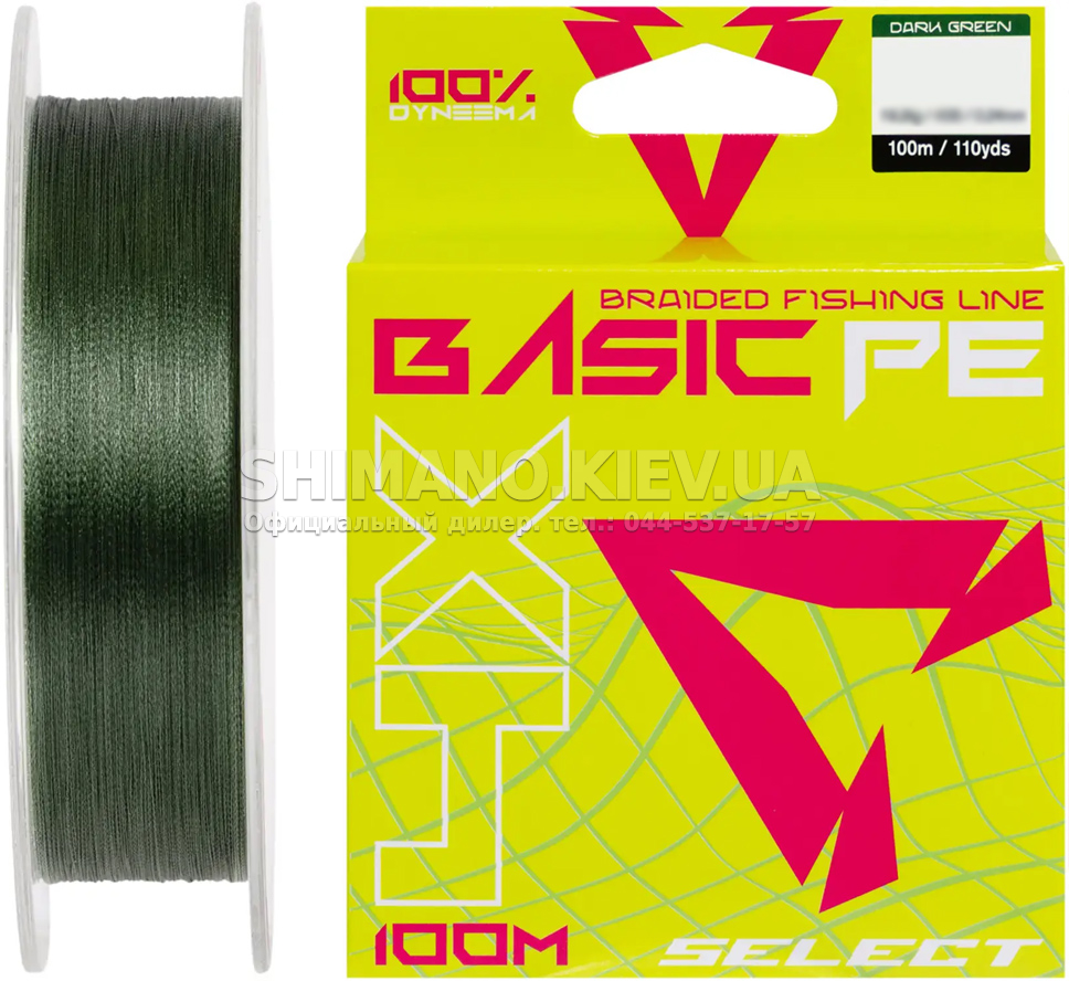 Шнур риболовний Select Basic PE 100m, 0.08mm, 8Lb/4kg, колір: темно-зелений