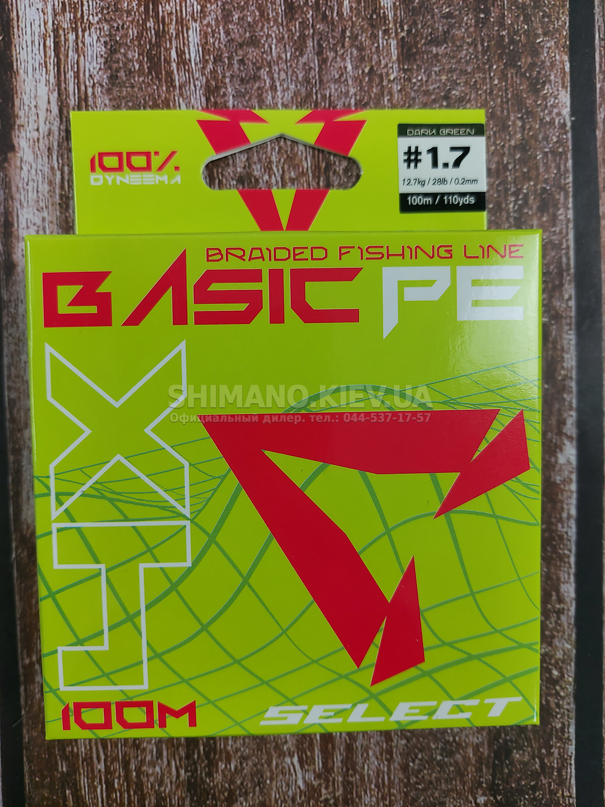 Шнур риболовний Select Basic PE 100m, 0.20mm, 28Lb/12.7kg, колір: темно-зелений