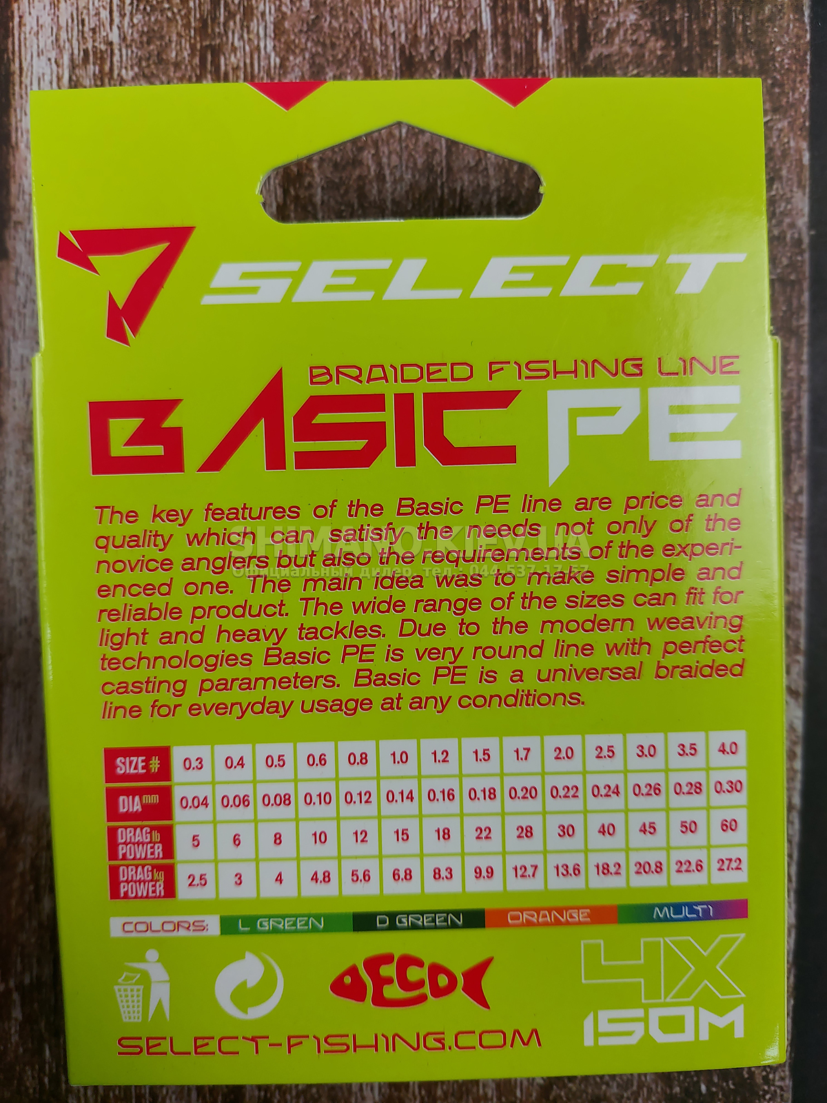 На відміну від багатьох бюджетних аналогів, SELECT Basic PE виробляється без зовнішніх просочень і покриттів, які швидко стираються після кількох інтенсивних рибалок. Тому шнур довго зберігає свою міцність, щільність та стабільні робочі характеристики, навіть після багатьох виходів на воду.