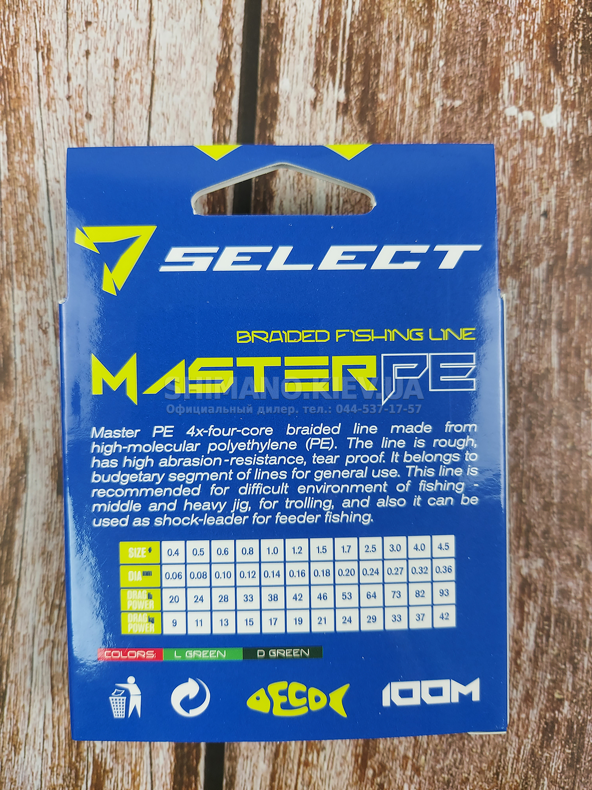 Шнури SELECT Master PE виготовляються з японського матеріалу Nippon Dyneema PE у Тайвані.