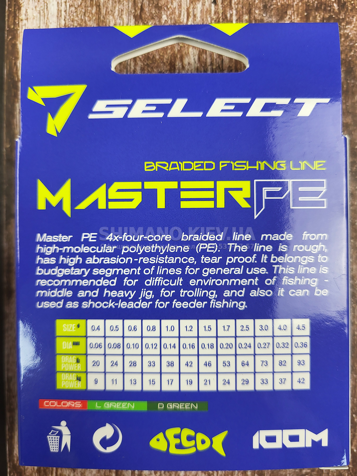 Шнури SELECT Master PE виготовляються з японського матеріалу Nippon Dyneema PE у Тайвані.