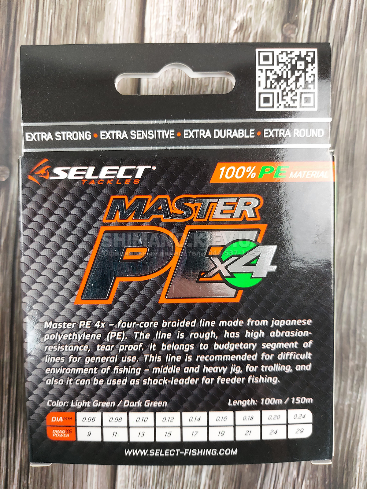 Шнури SELECT Master PE виготовляються з японського матеріалу Nippon Dyneema PE у Тайвані.