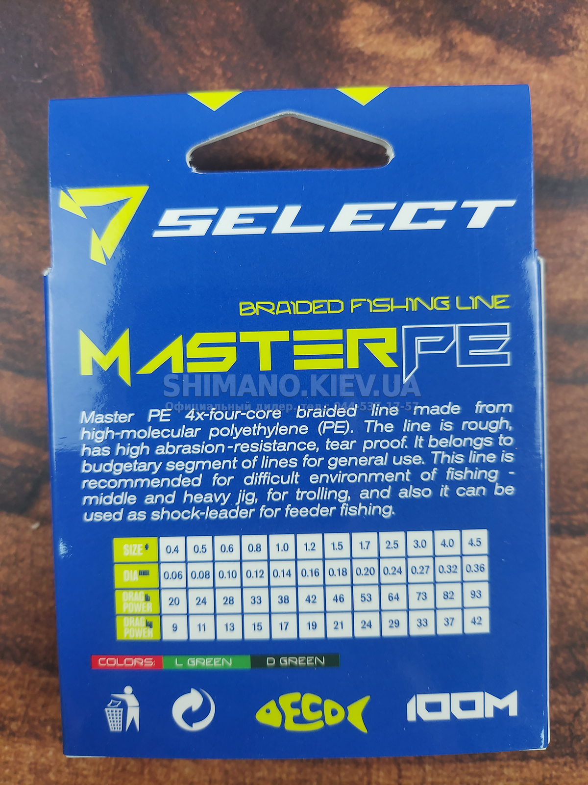 Шнури SELECT Master PE виготовляються з японського матеріалу Nippon Dyneema PE у Тайвані.