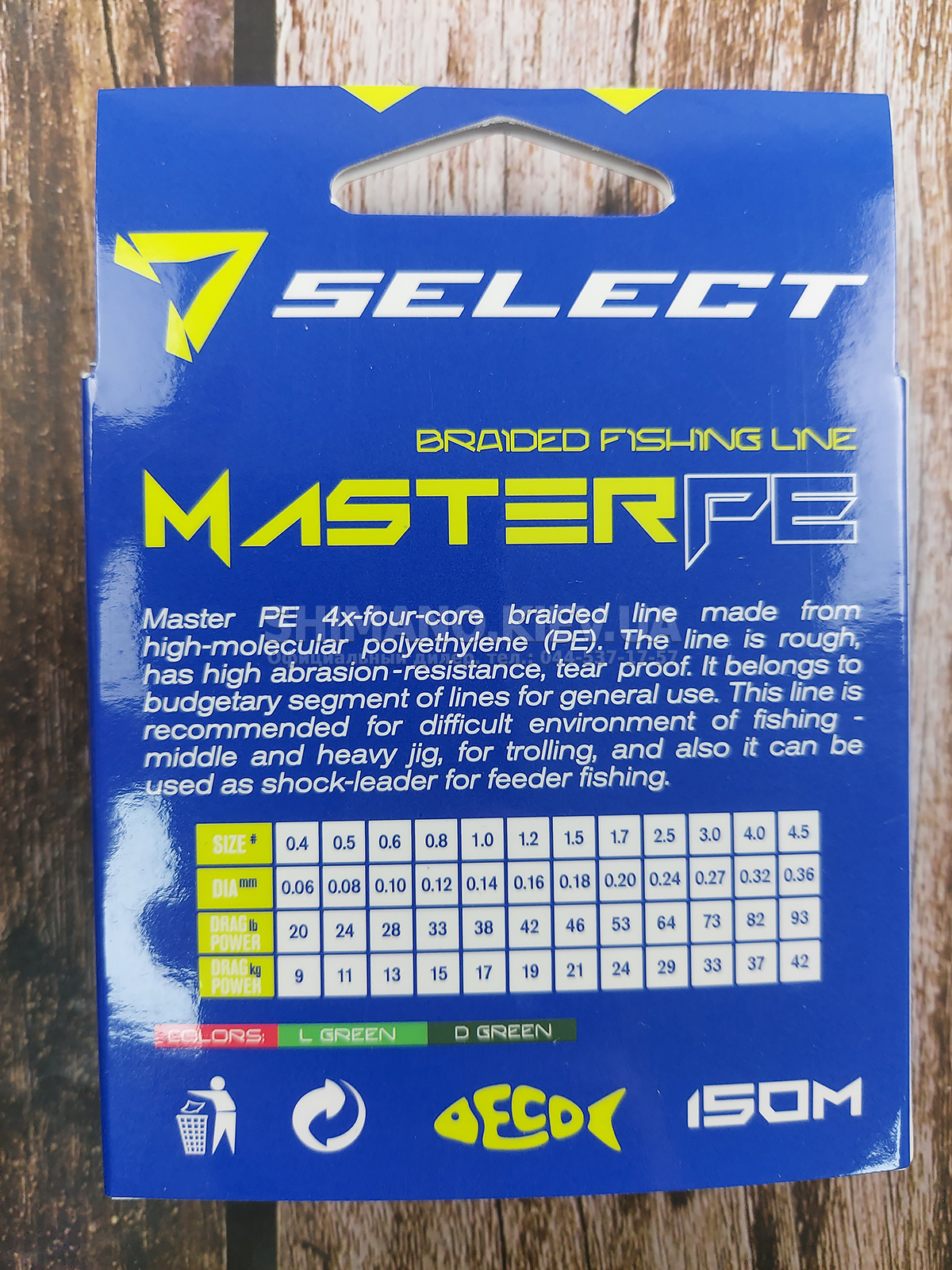 Шнури SELECT Master PE виготовляються з японського матеріалу Nippon Dyneema PE у Тайвані.
