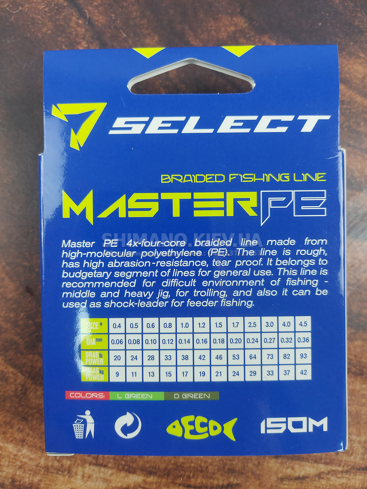 Шнури SELECT Master PE виготовляються з японського матеріалу Nippon Dyneema PE у Тайвані.