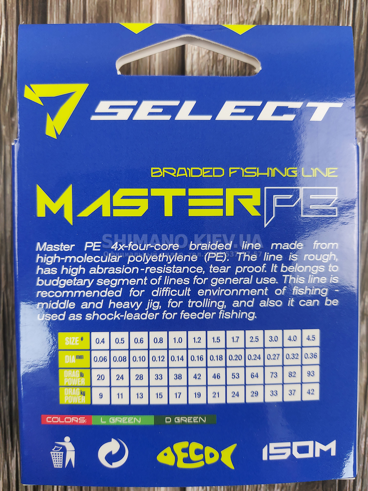 Шнури SELECT Master PE виготовляються з японського матеріалу Nippon Dyneema PE у Тайвані.