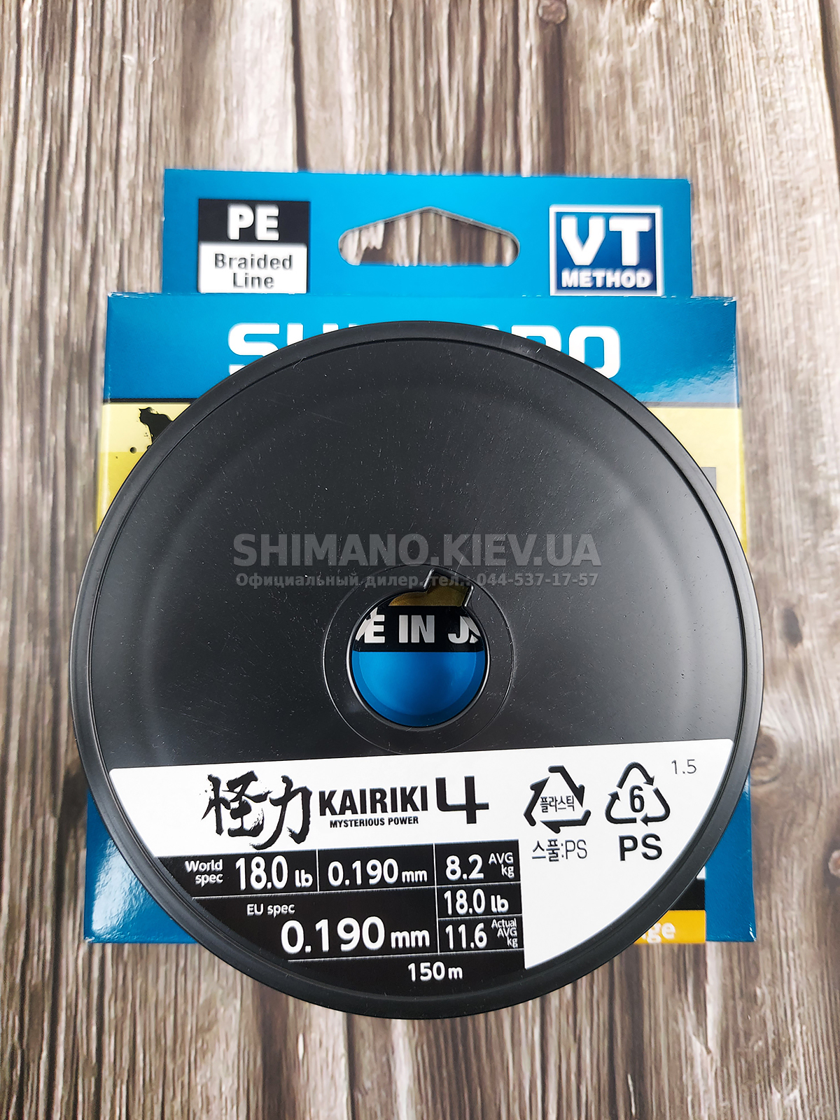 Плетений шнур Shimano Kairiki 4 PE 150м - це плетінка з щільною структурою на базі 4 волокон, виготовлених з поліетилену високого класу.